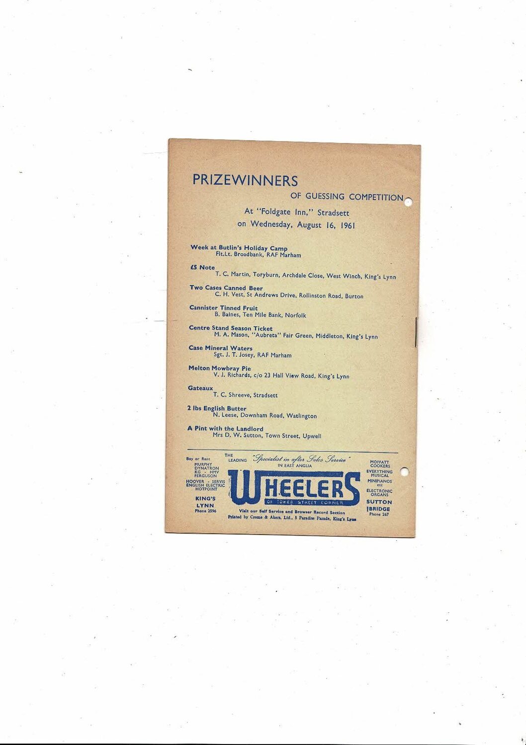 1961/62 Kings Lynn v Folkestone Southern League Football Programme