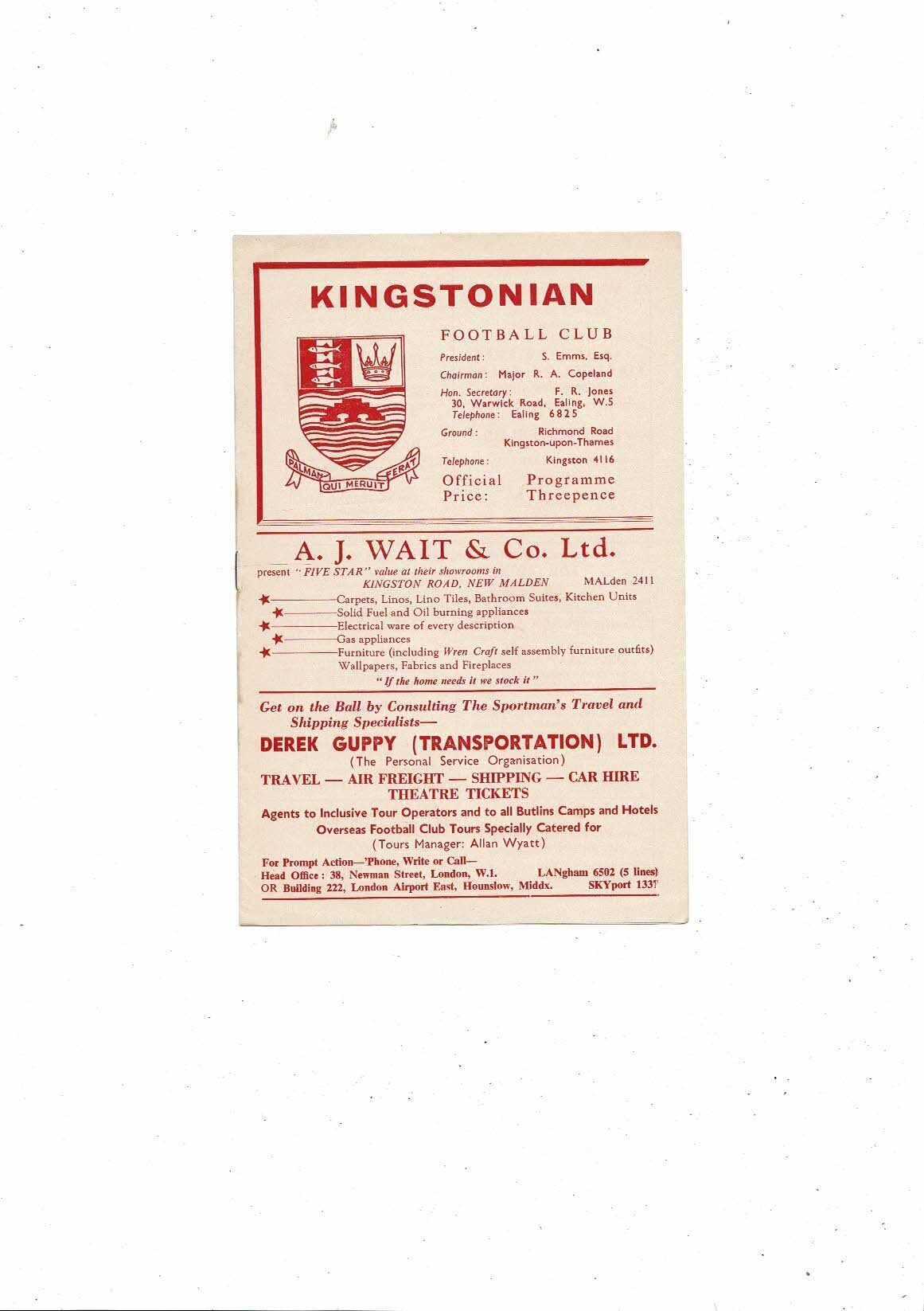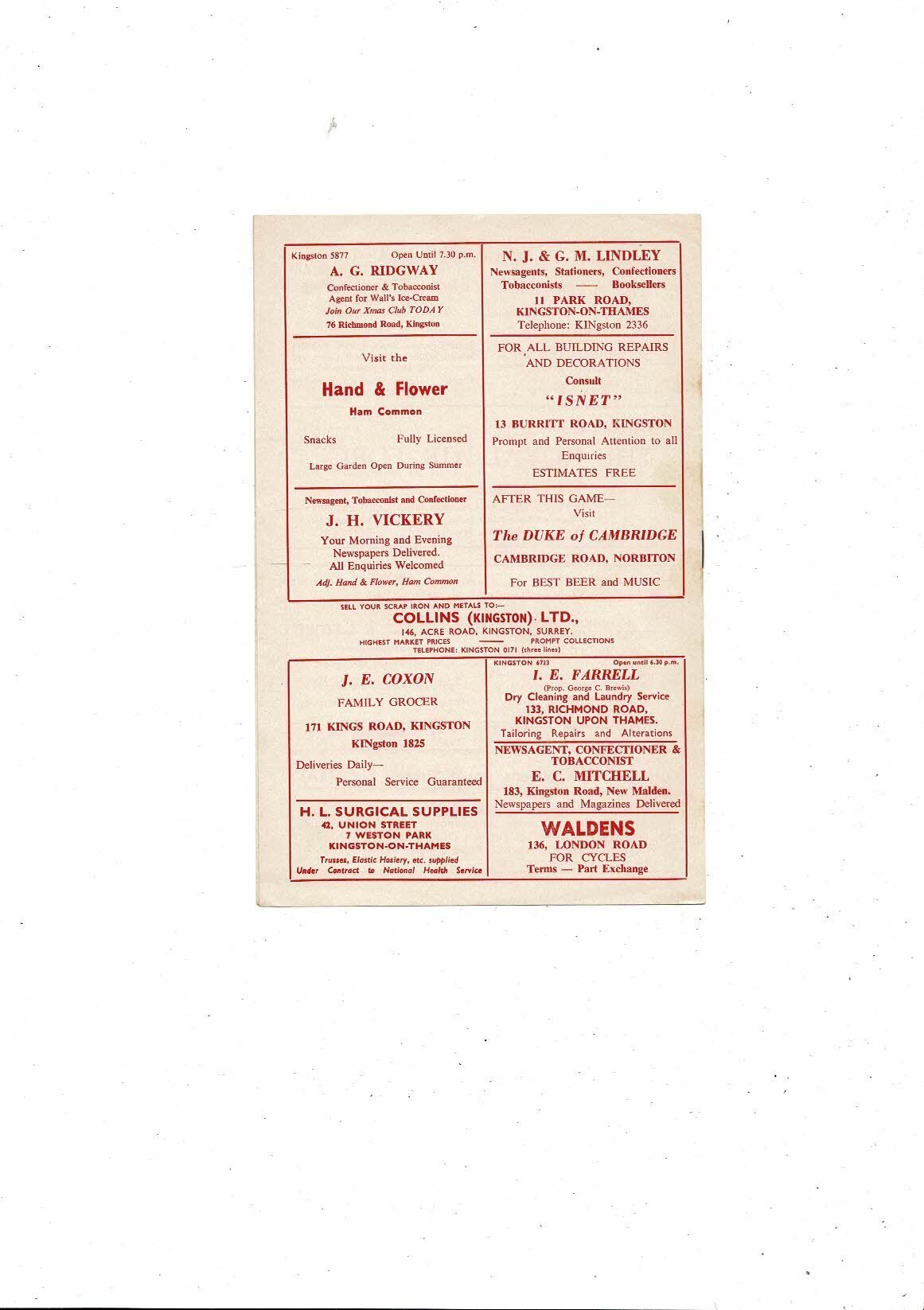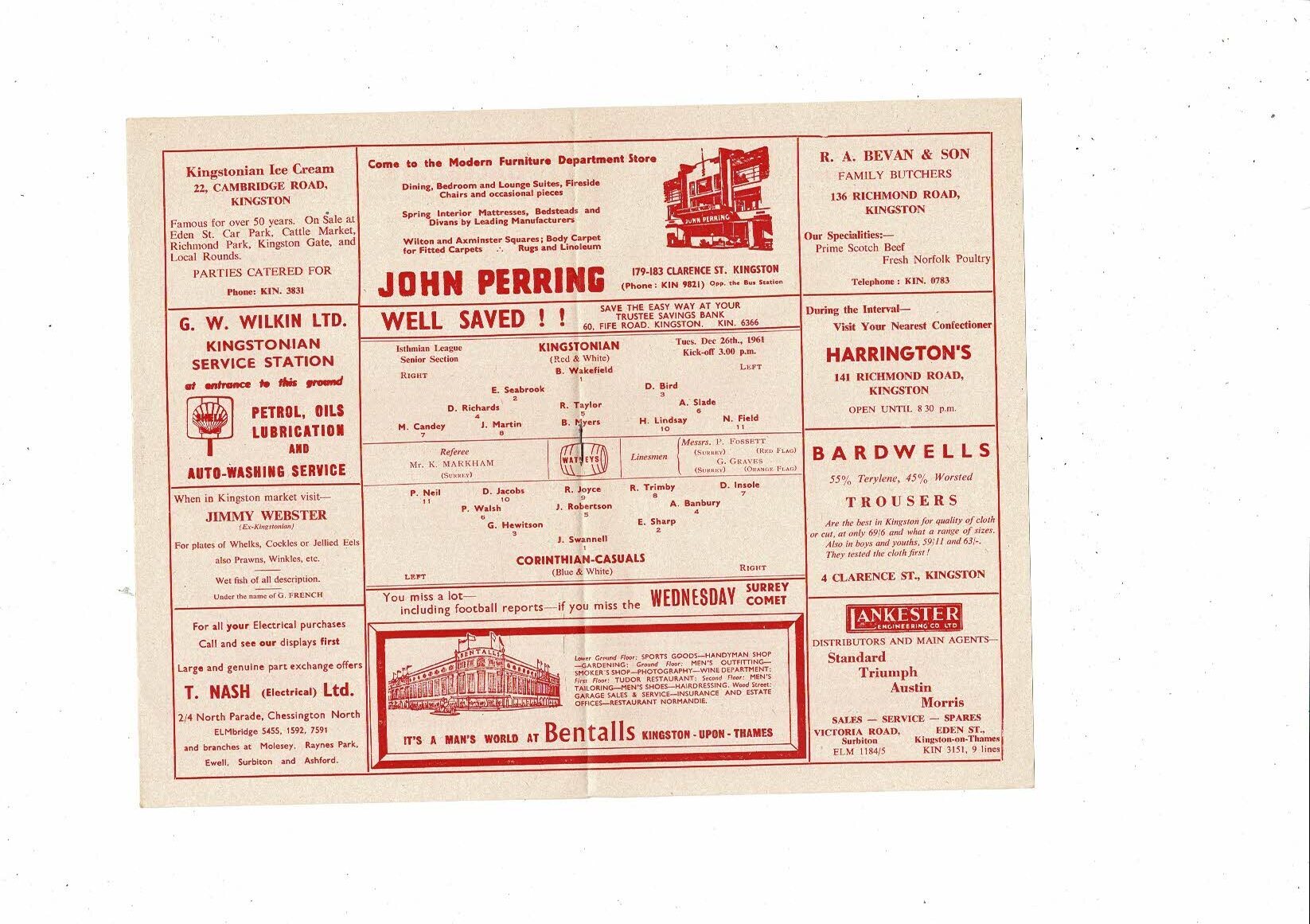 1961/62 Kingstonian v Corinthian Causals Isthmian League Football Programme