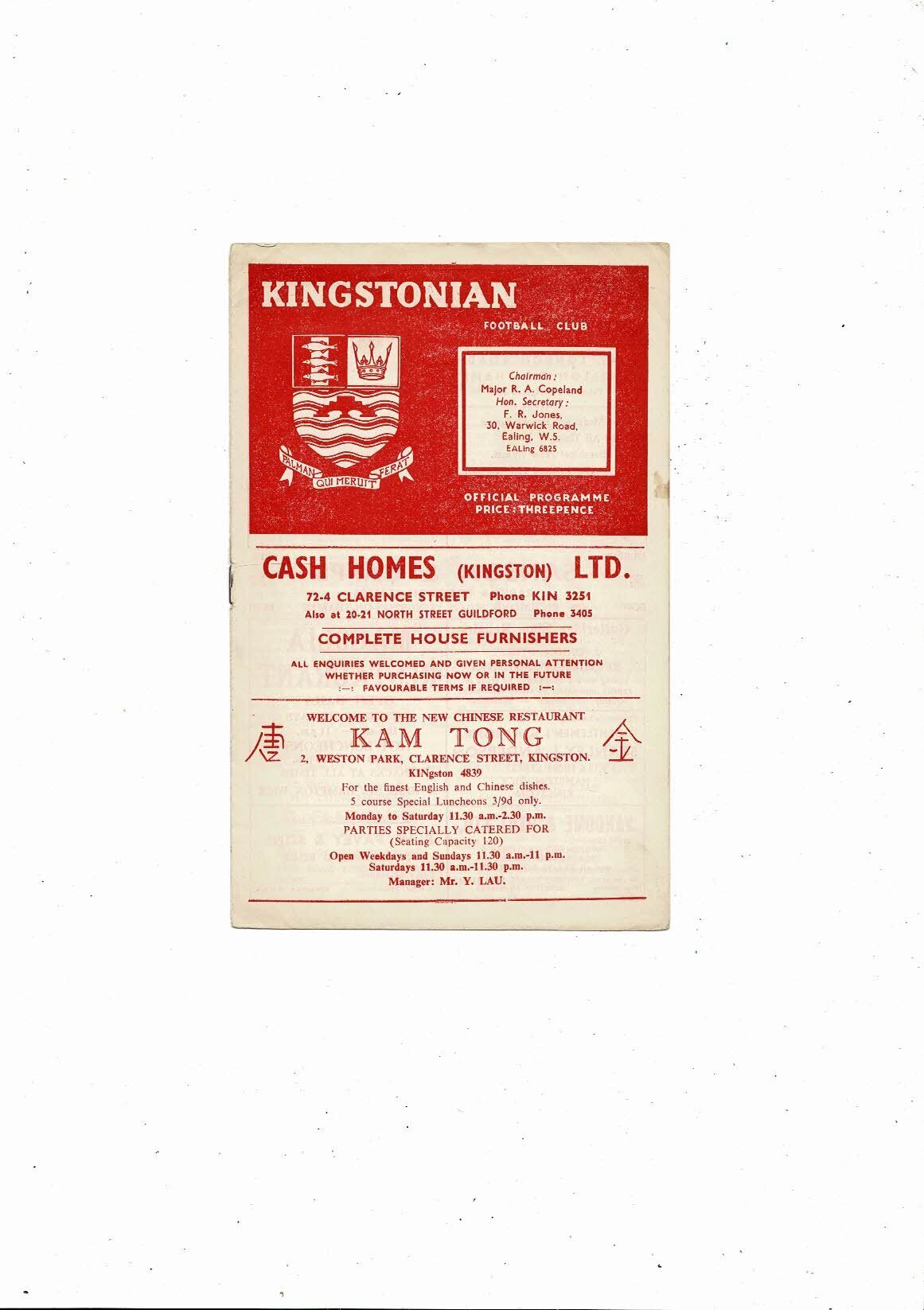 Kingstonian v Sutton United Surrey Senior Cup Football Programme 1959/60