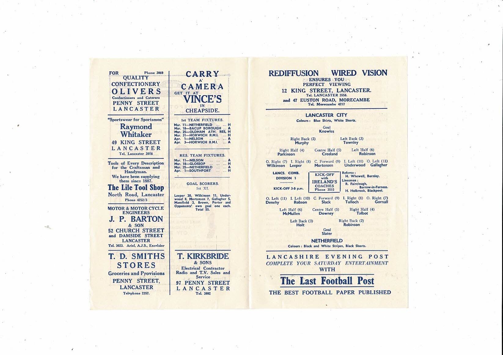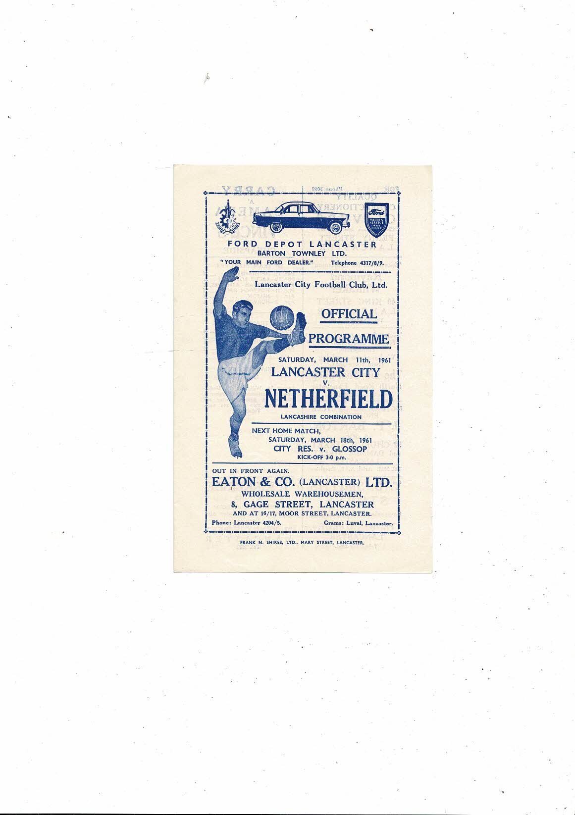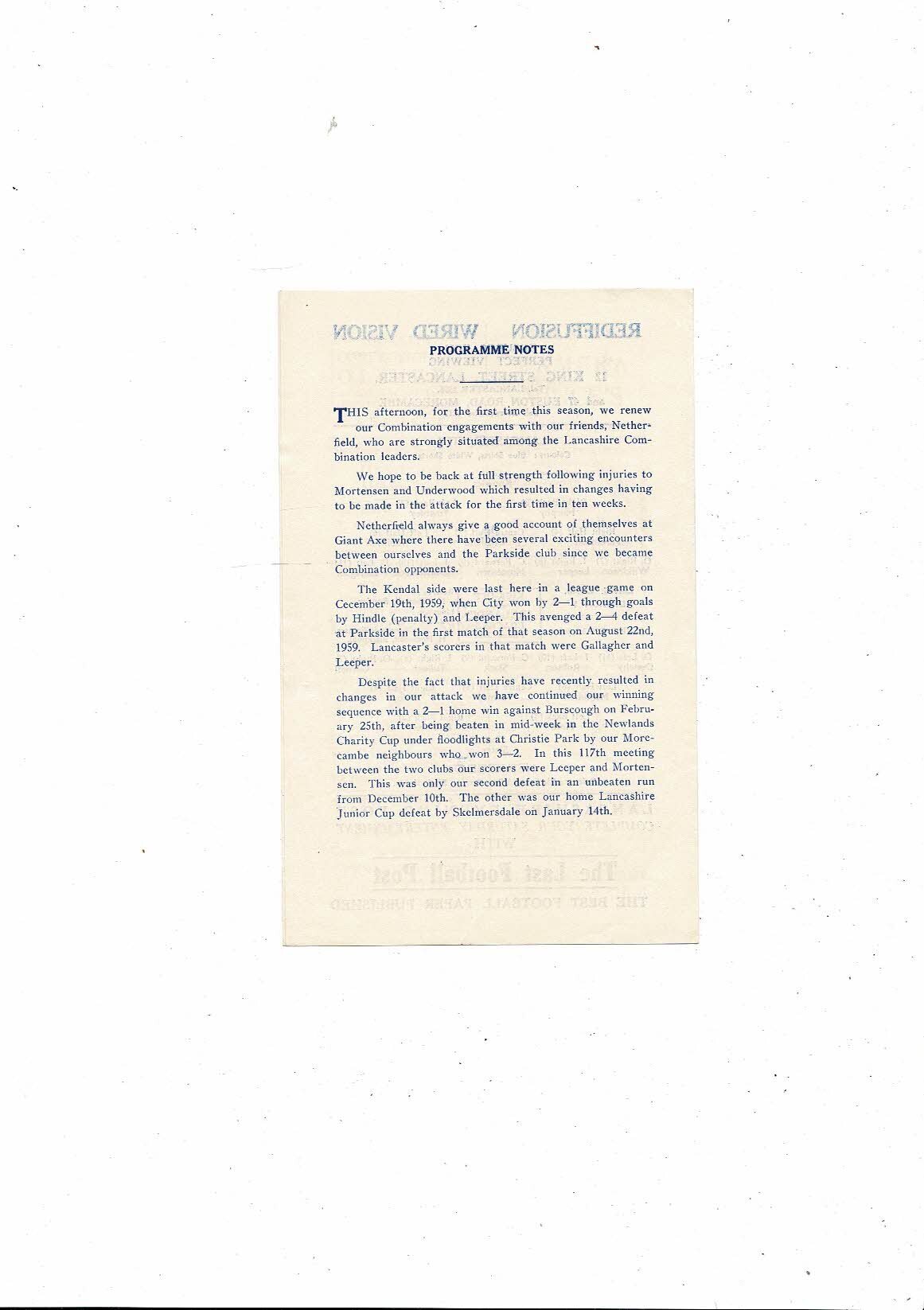 1960/61 Lancaster City v Netherfield Lancashire Combination Football Programme