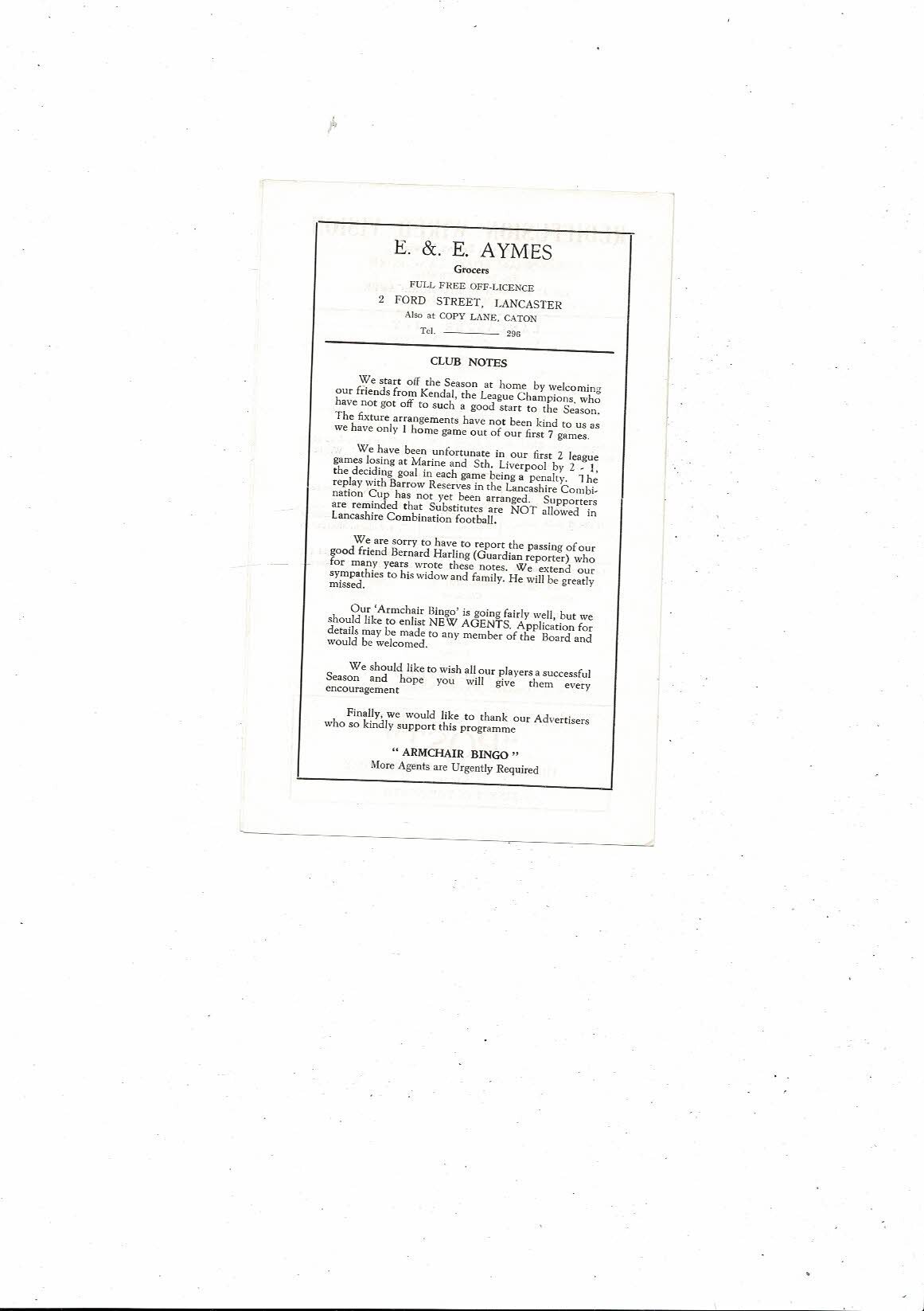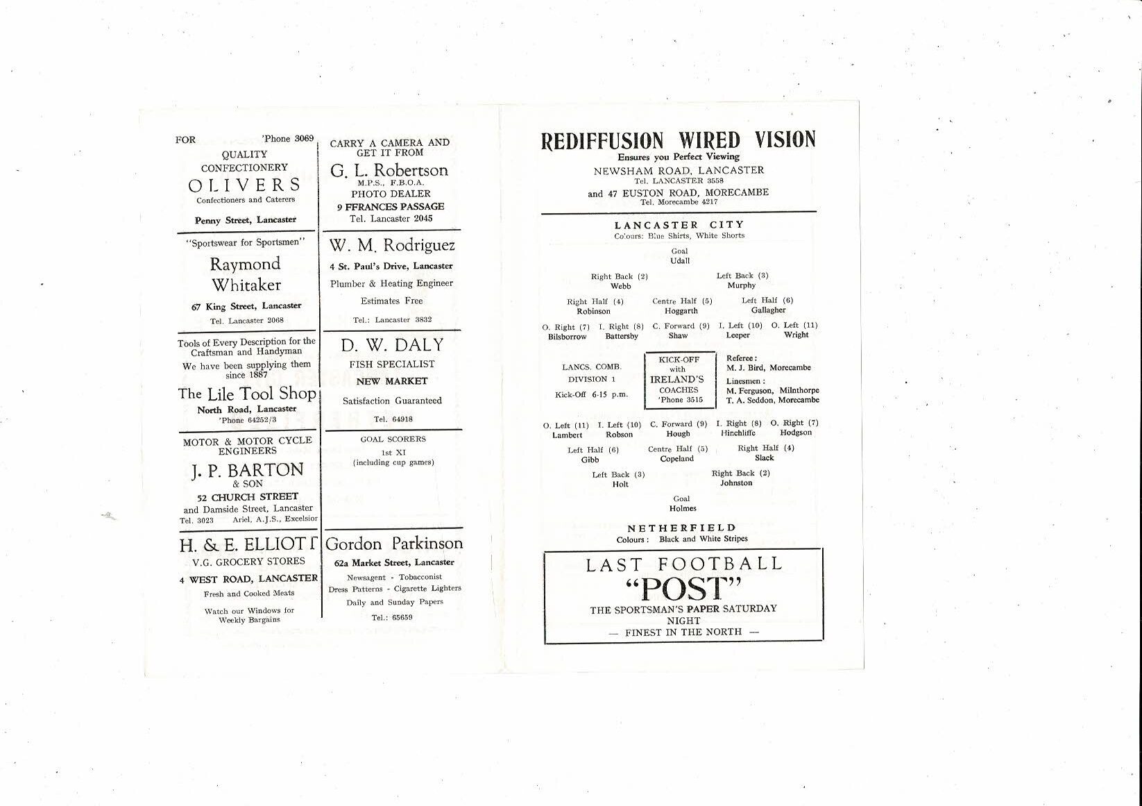 1965/66 Lancaster City v Netherfield Lancashire Combination Football Programme