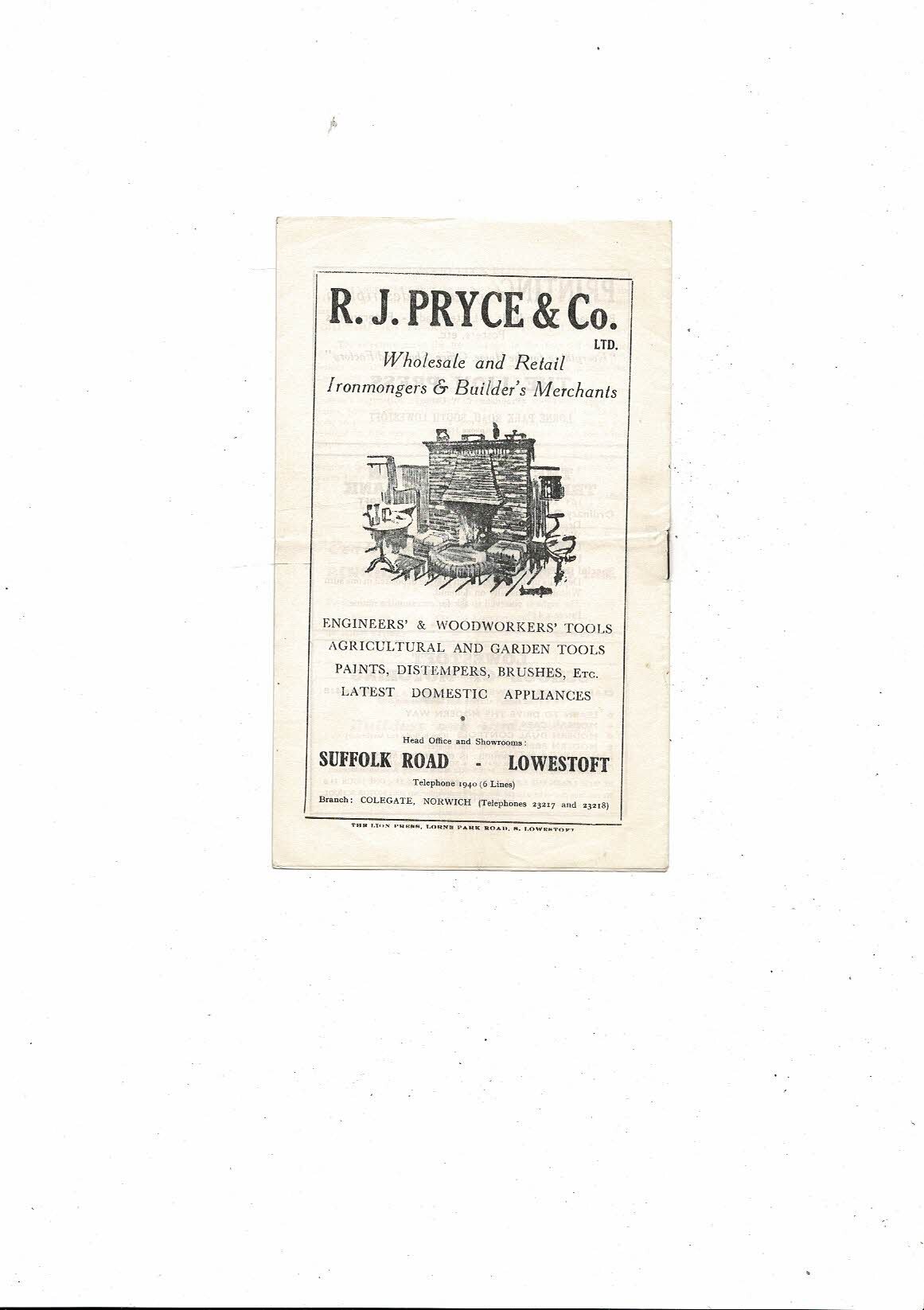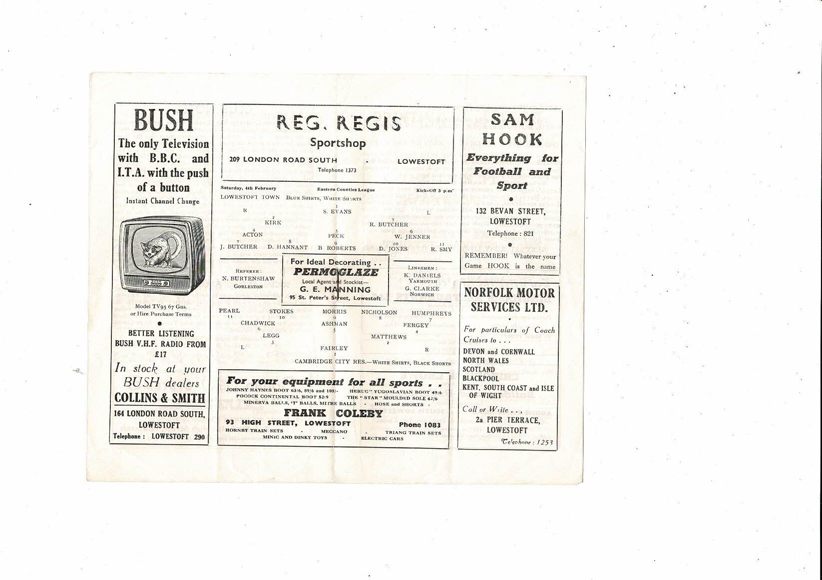 1960/61 Lowestoft Town v Cambridge City Res Eastern Counties League Programme