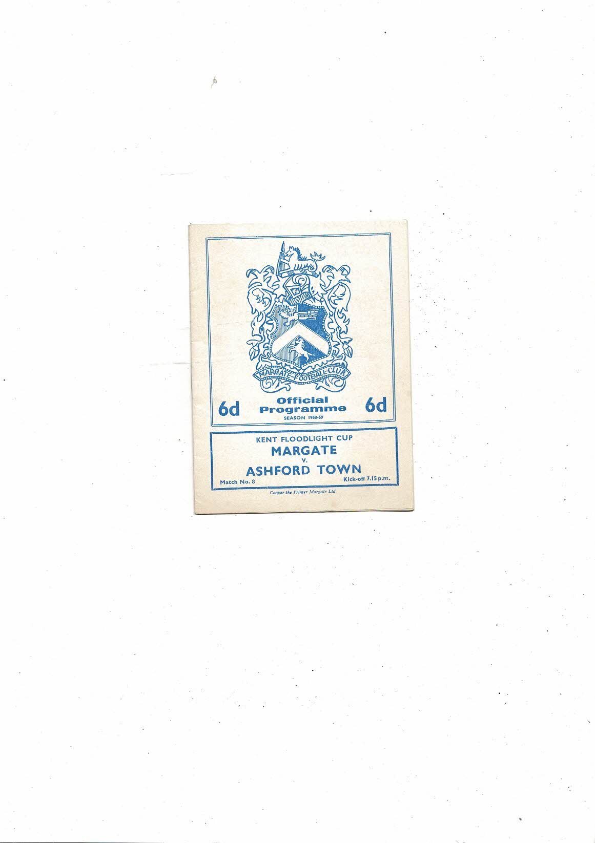 1968/69 Margate v Ashford Town Kent Floodlight Cup Football Programme