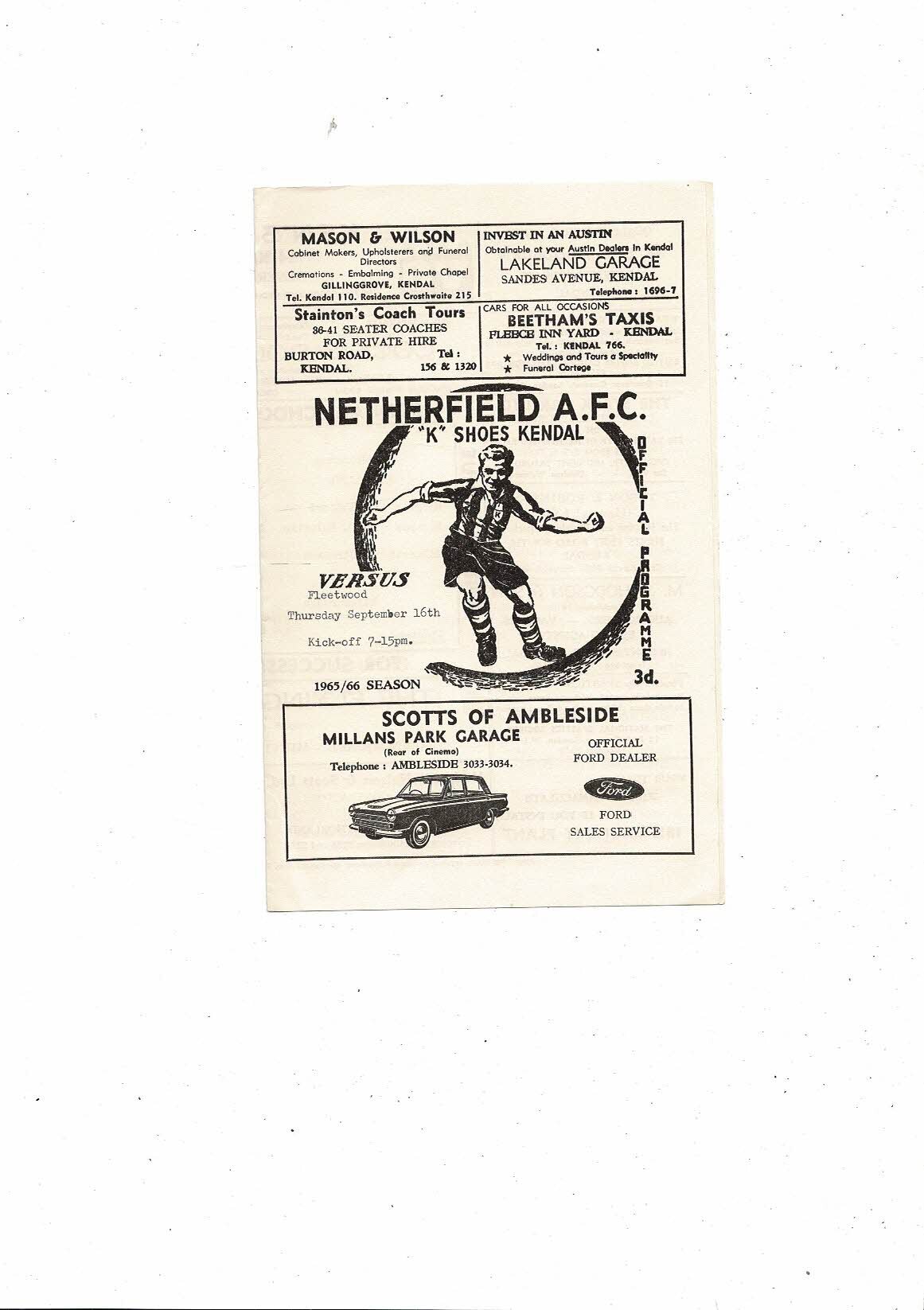 1965/66 Netherfield v Fleetwood Lancashire Combination League Football Programme