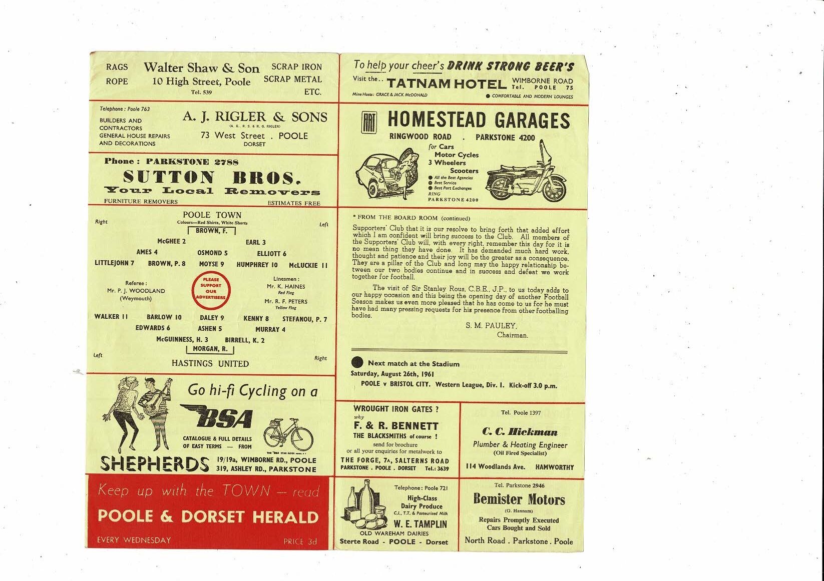 1961/62 Poole Town v Hasting United Southern League Football Programme