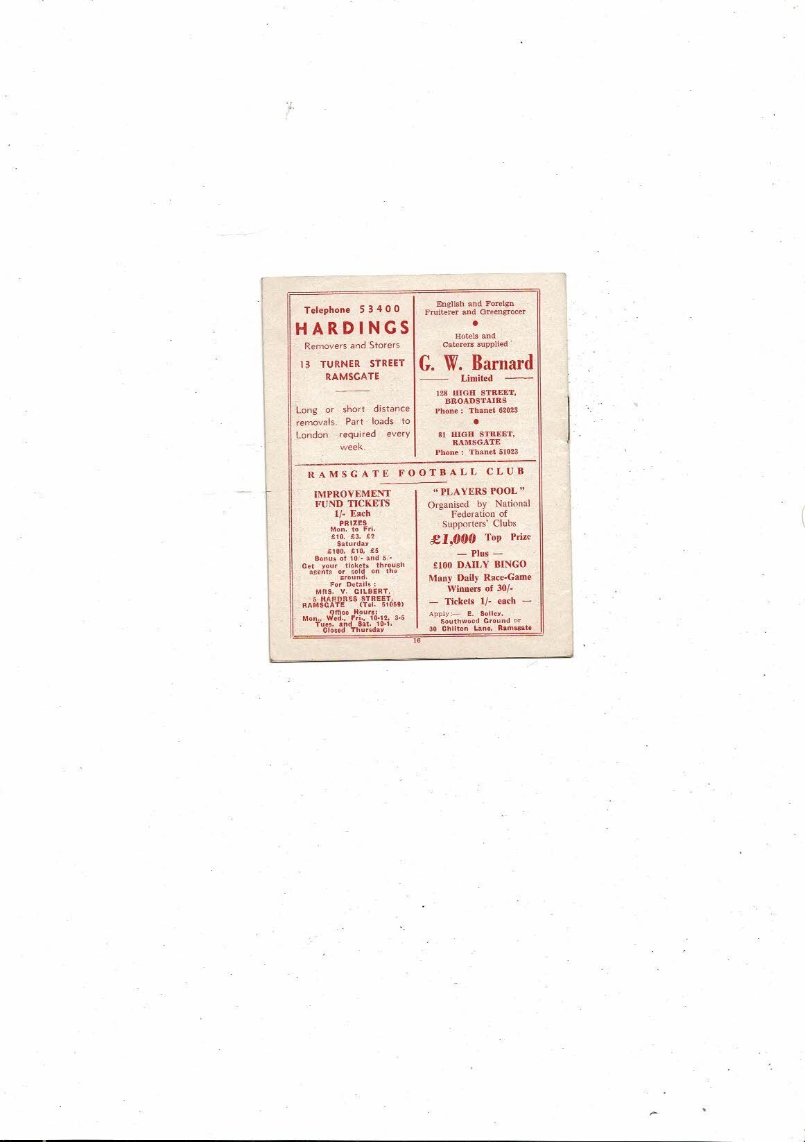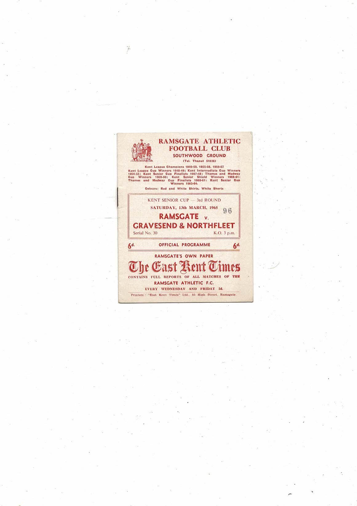 1964/65 Ramsgate v Gravesend & Northfleet Kent Cup Football Programme