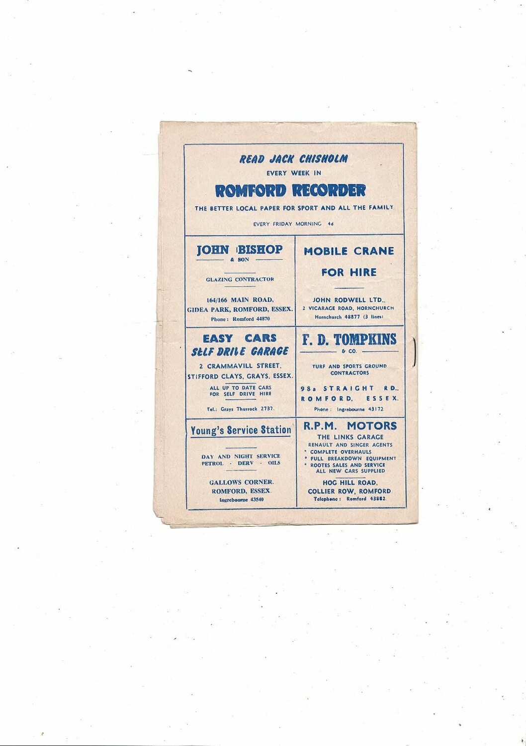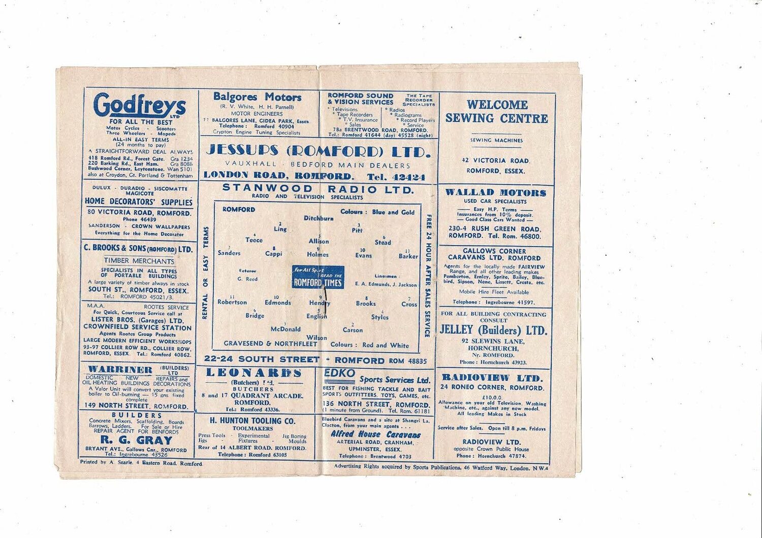 1960/61 Romford v Gravesend & Northfleet Southern League Football Programme