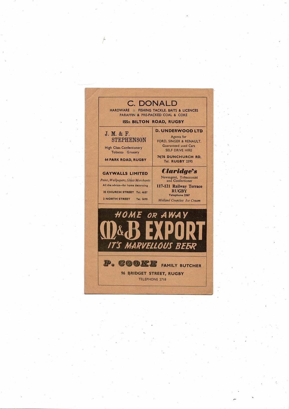 1962/63 Rugby Town v Nuneaton Southern League Football Programme