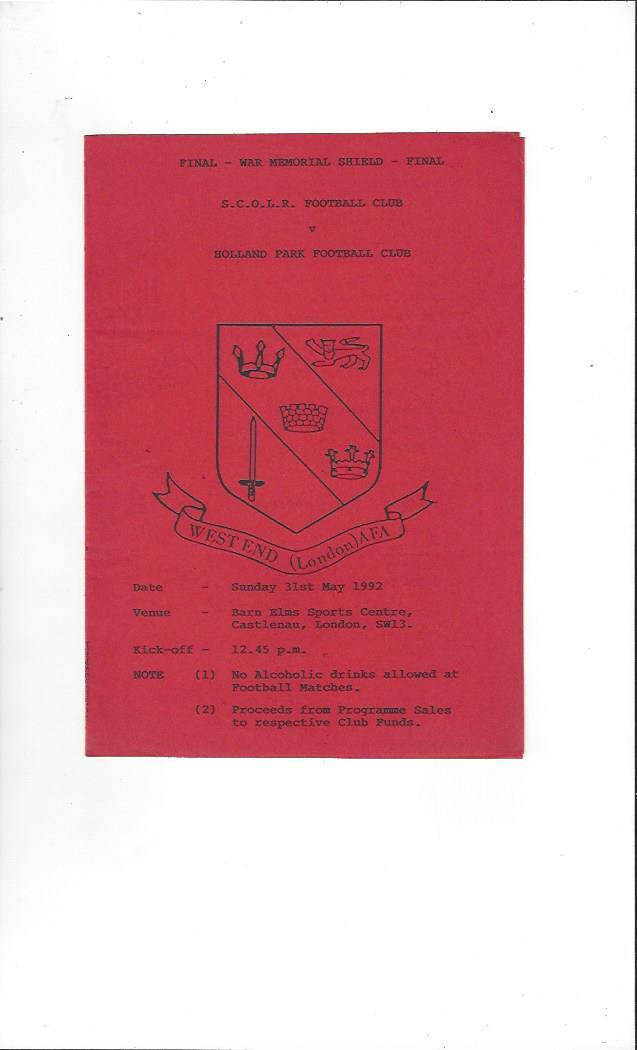 1991/92 S.C.O.L.R.v Holland Park War Memorial Shield Final Football Programme