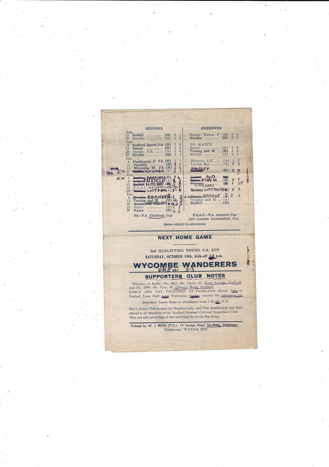 This original 4 page Football Programme is creased & folded with some staining, tiny nic on spine, score & word on team page, some results & other writing on back page. Please see scans