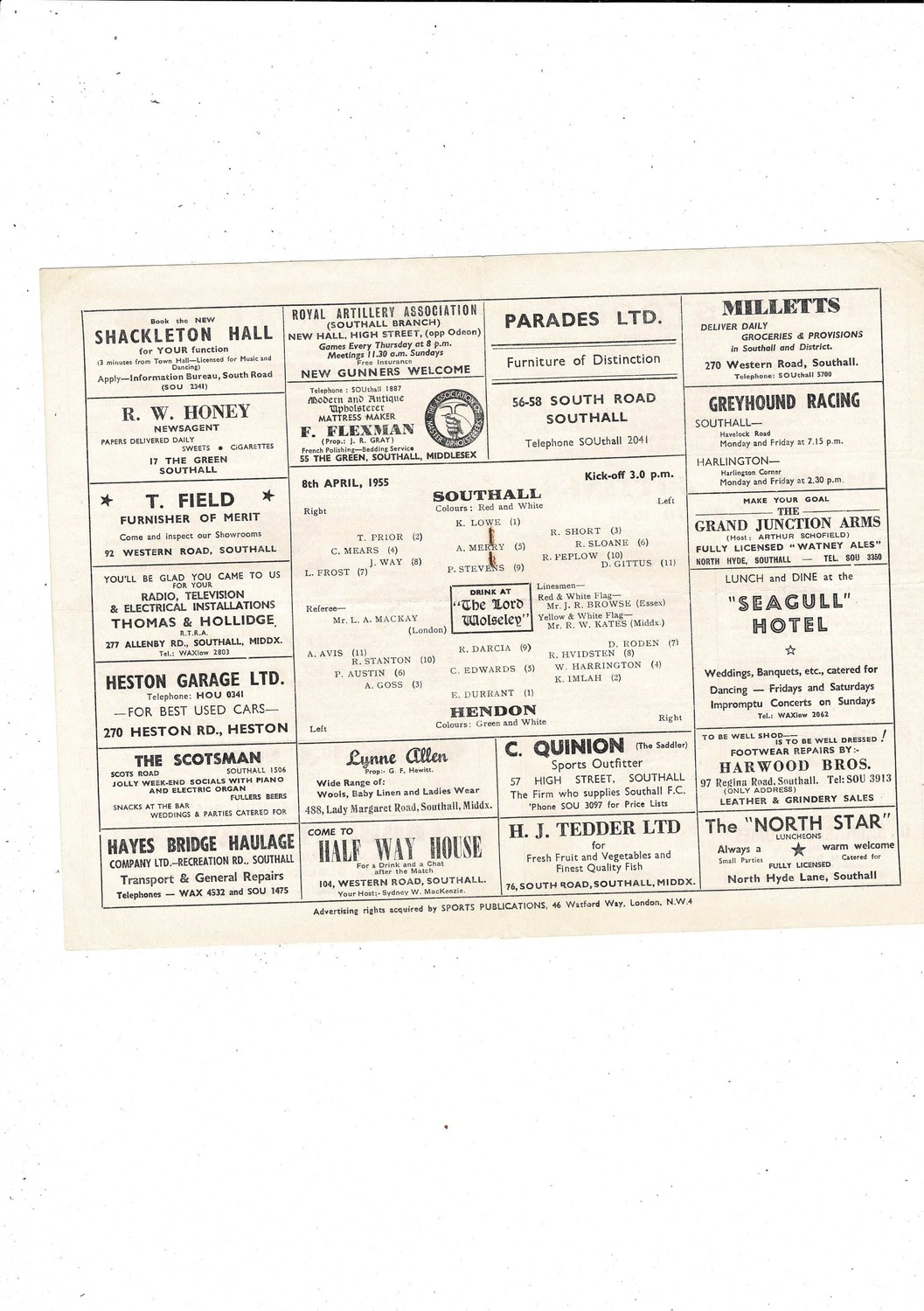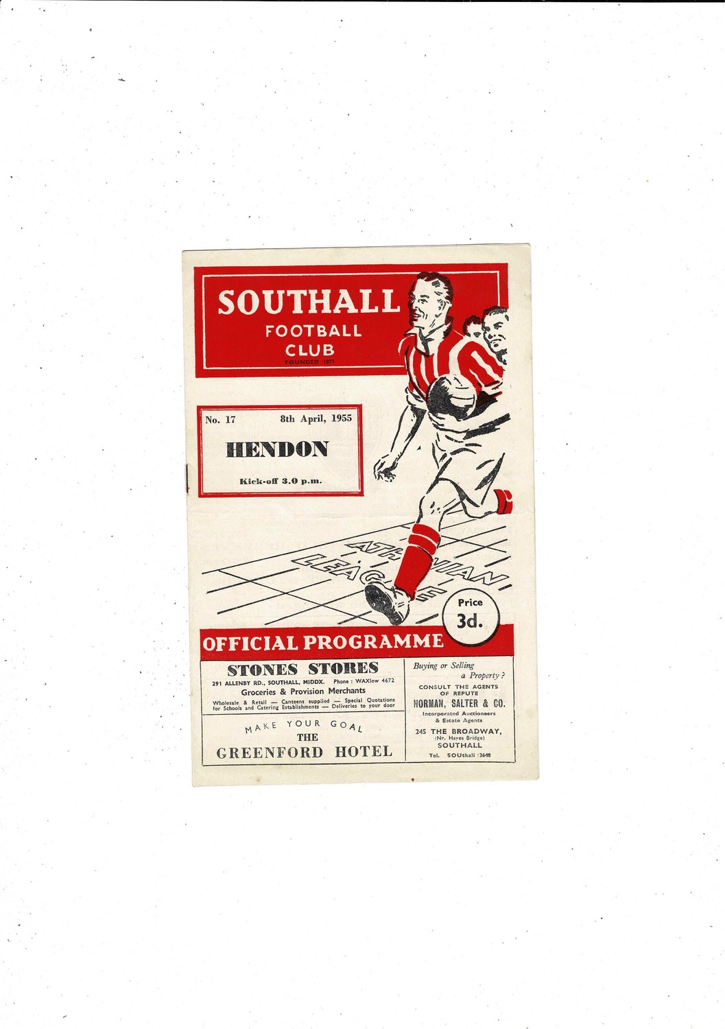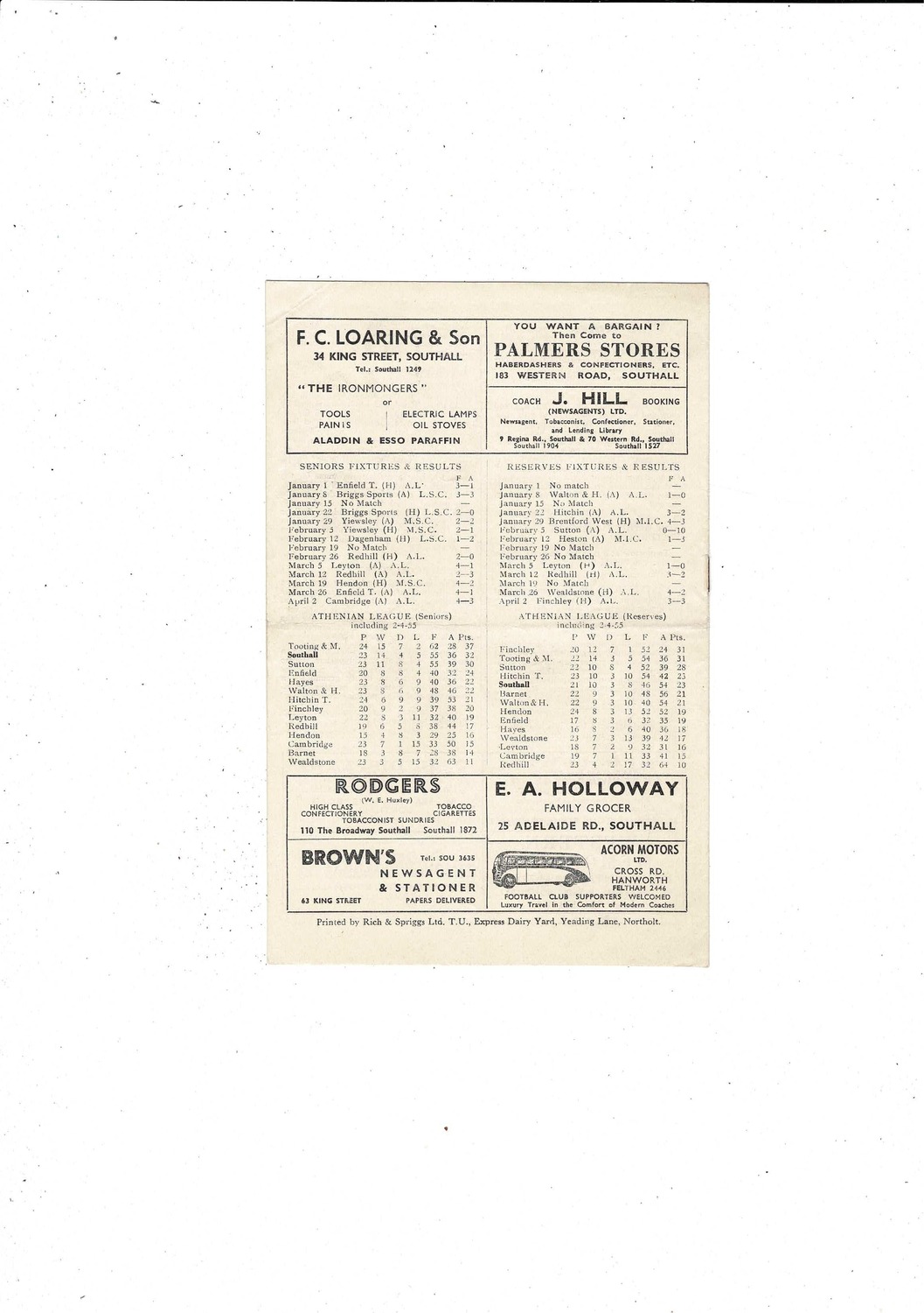 1954/55 Southall v Hendon Athenian League Football Programme