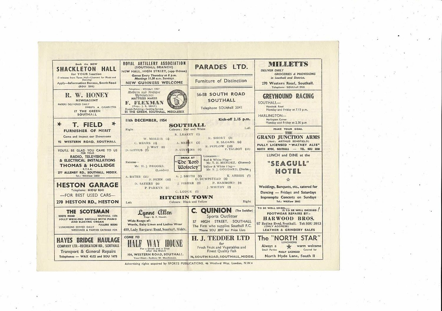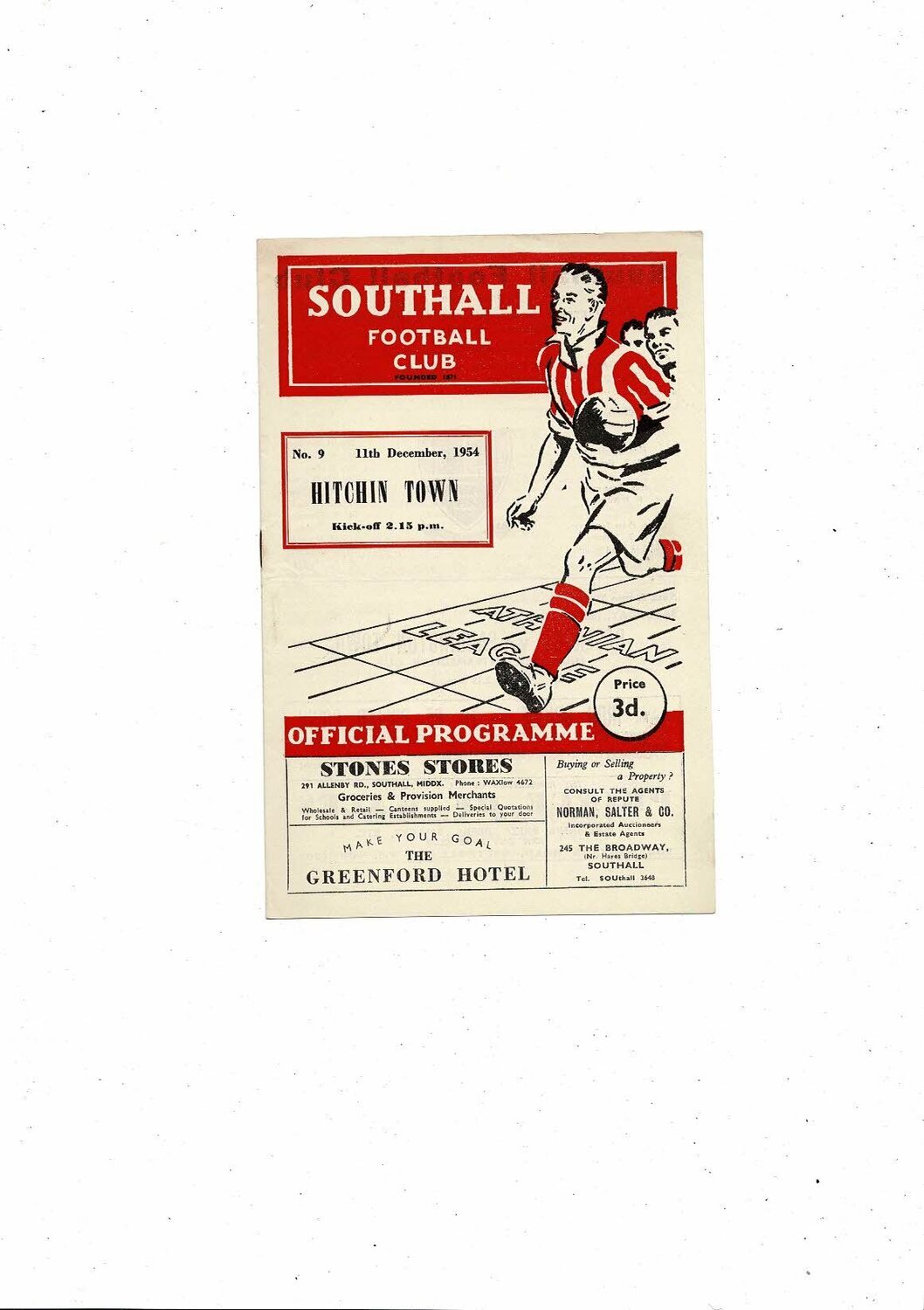 1954/55 Southall v Hitchin Town Athenian League Football Programme