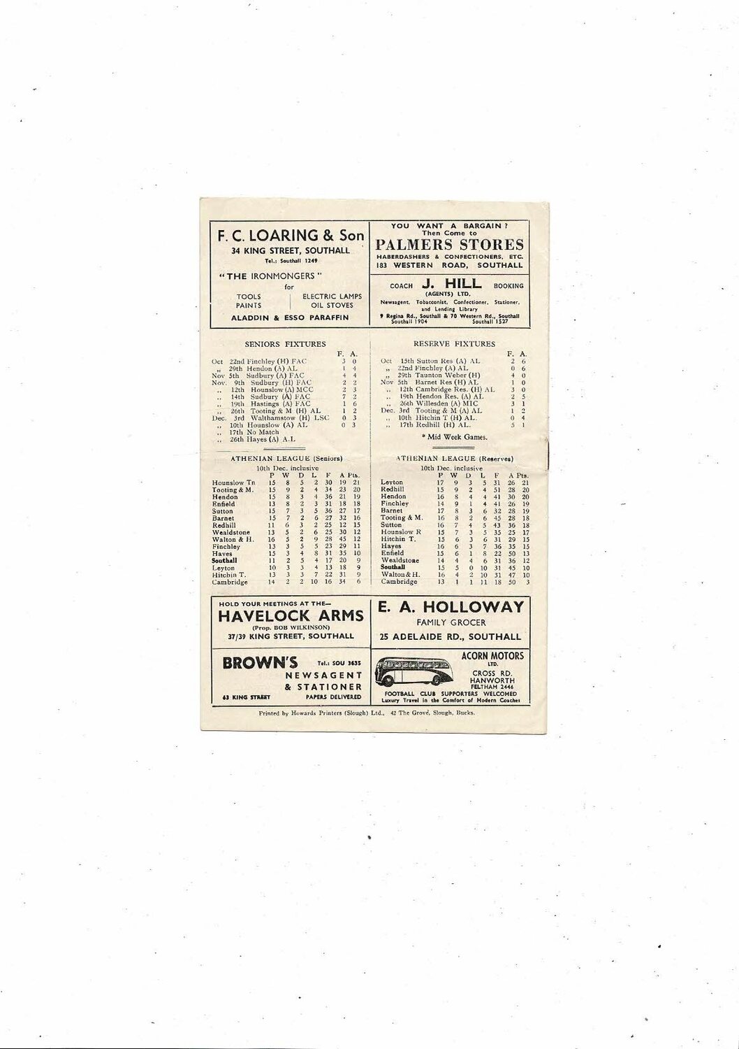 1955/56 Southall v Hayes Athenian League Football Programme