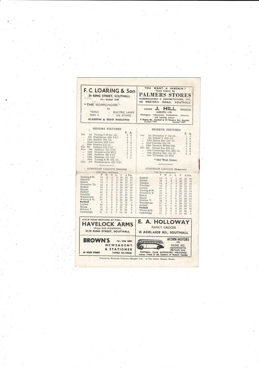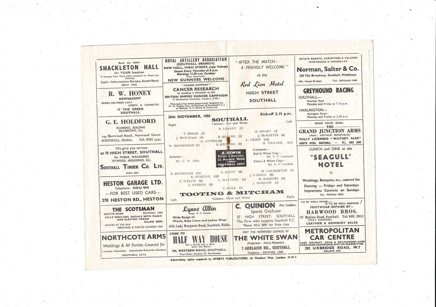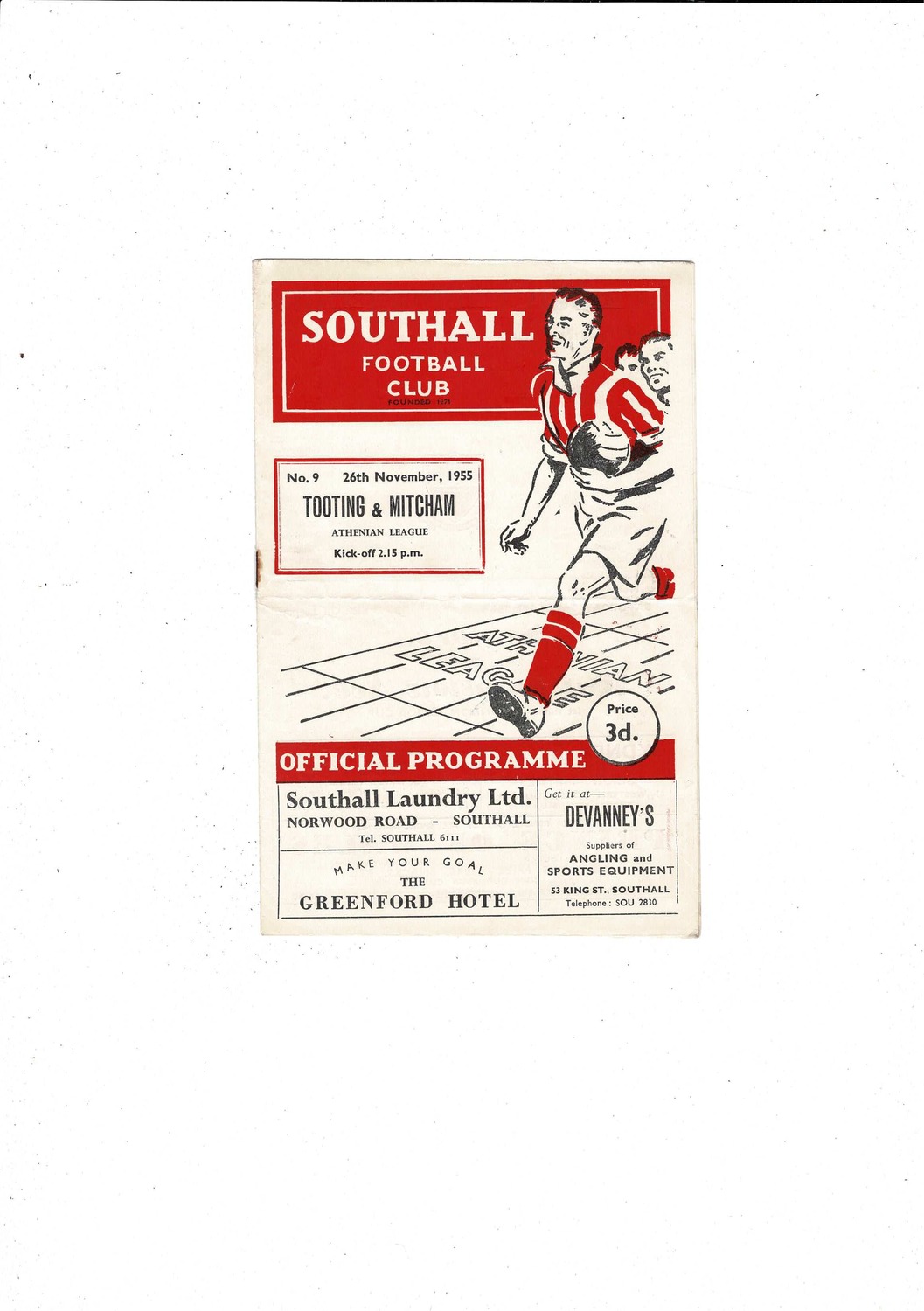 1955/56 Southall v Tooting & Mitcham Football Programme