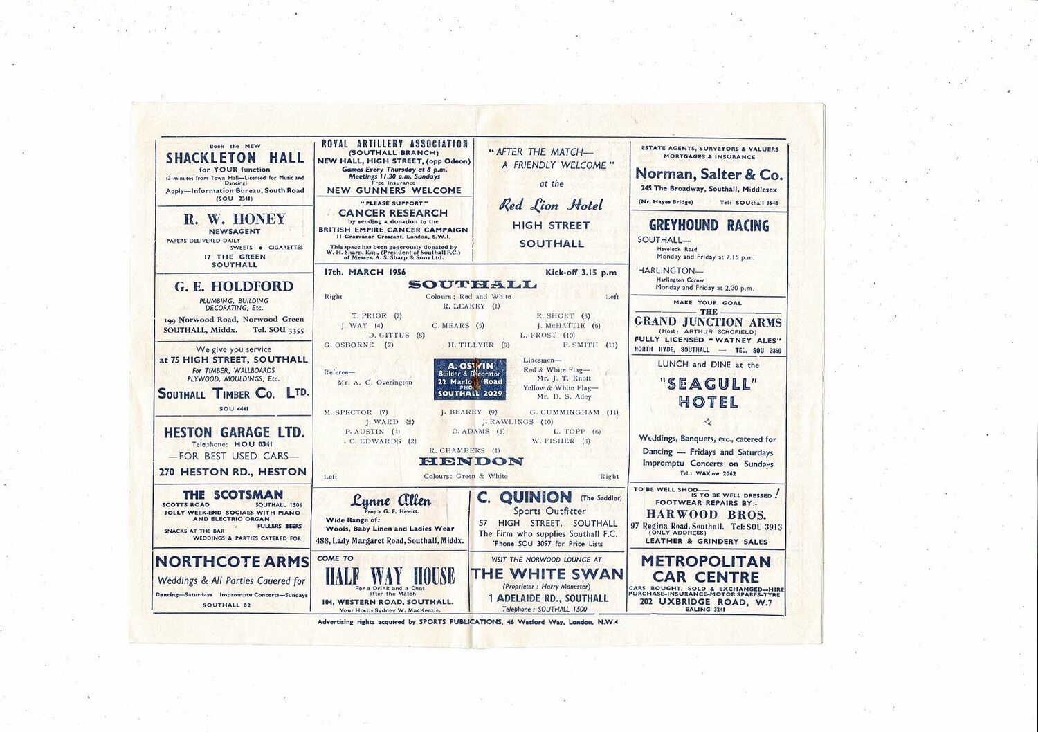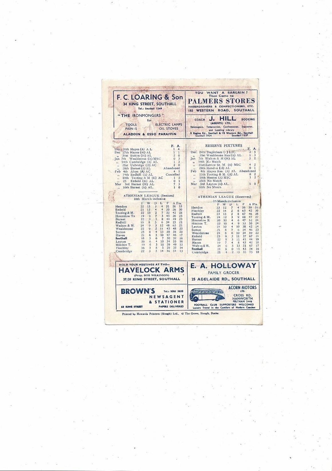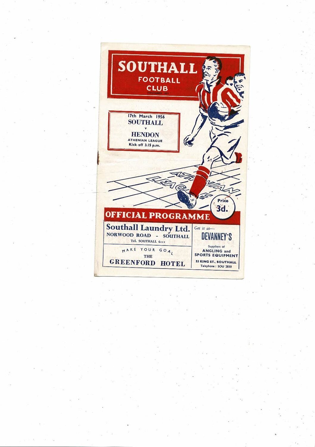 1956/57 Southall v Hendon Town Athenian League Football Programme