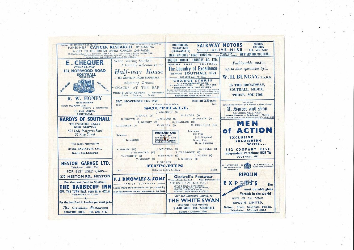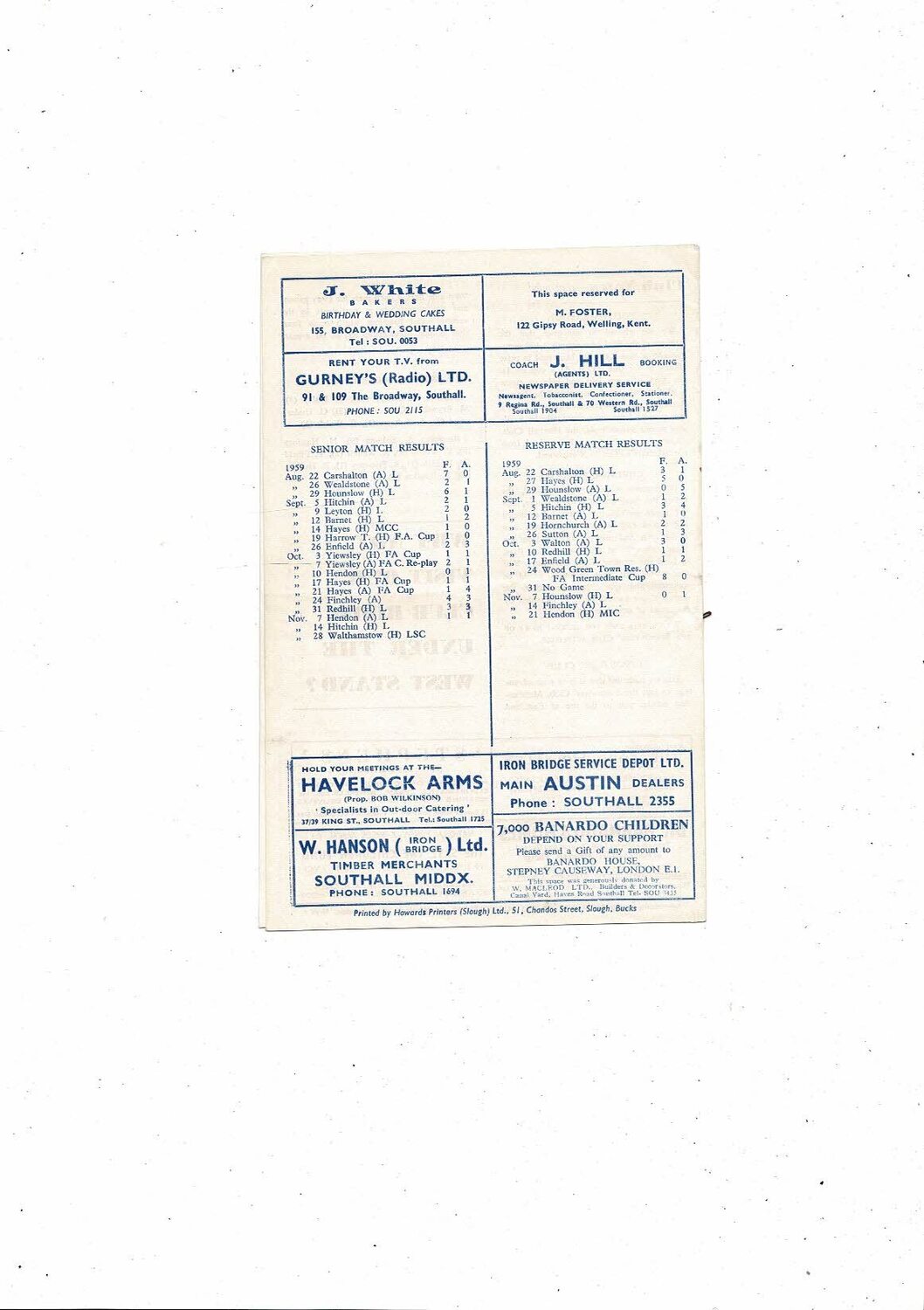 1959/60 Southall v Hitchin Athenian League Football Programme