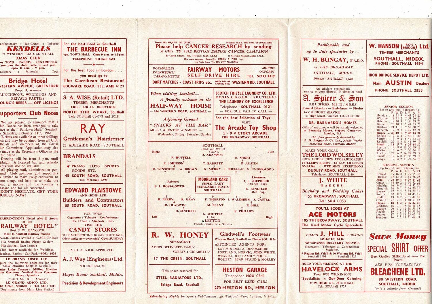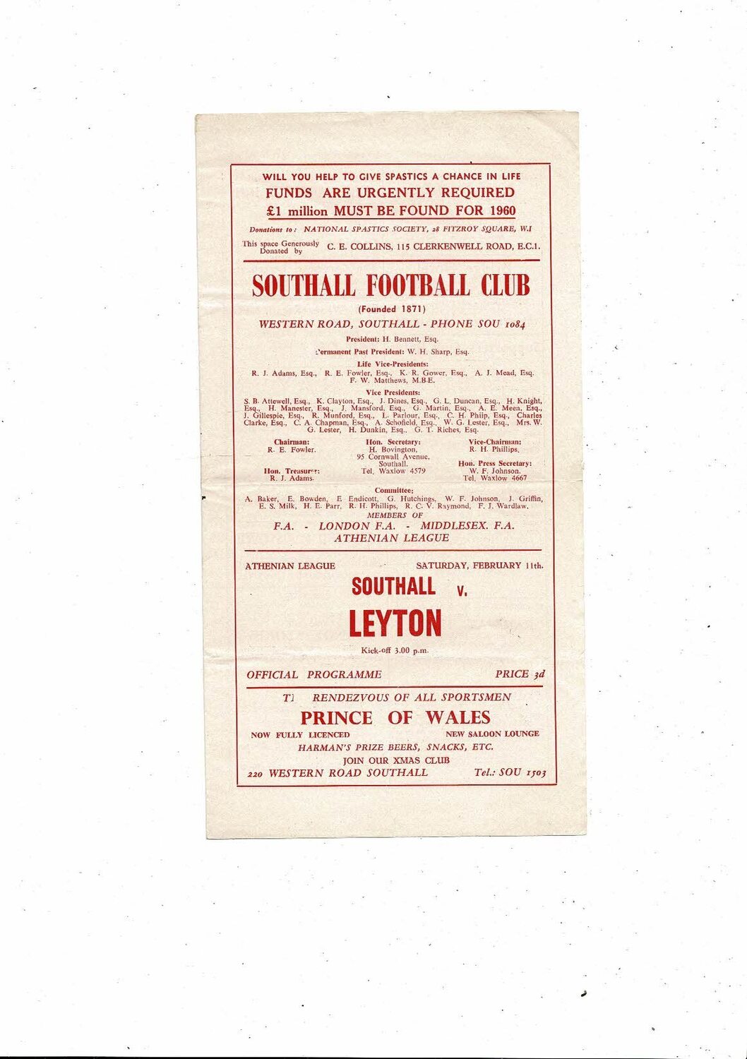 1960/61 Southall v Leyton Athenian League Football Programme
