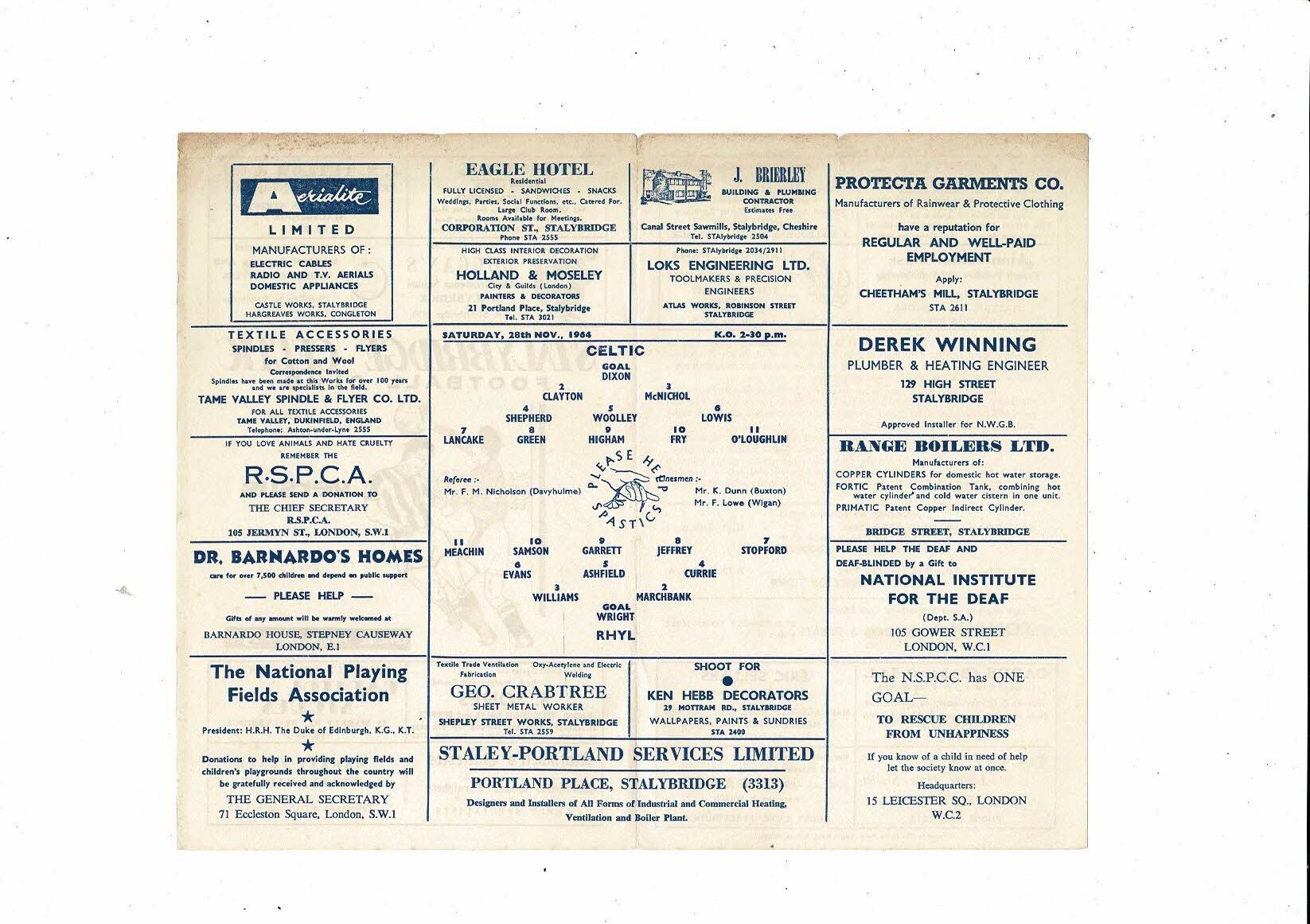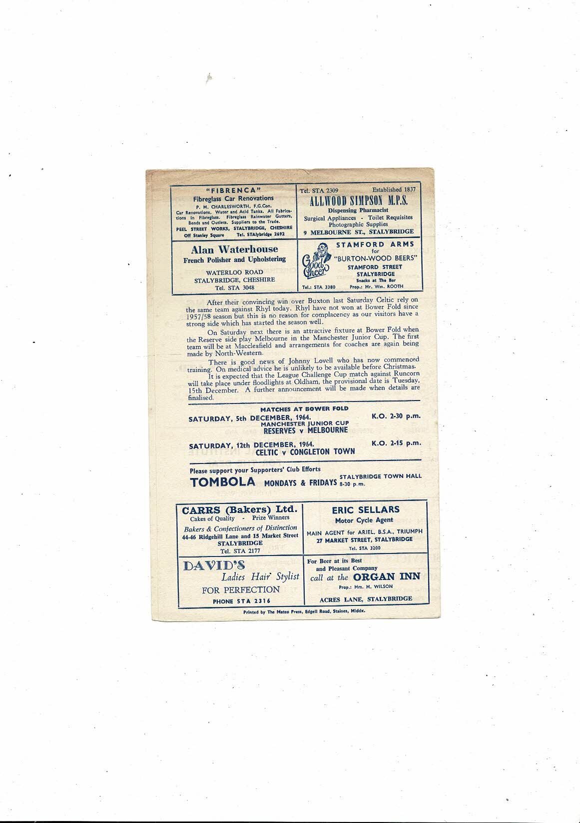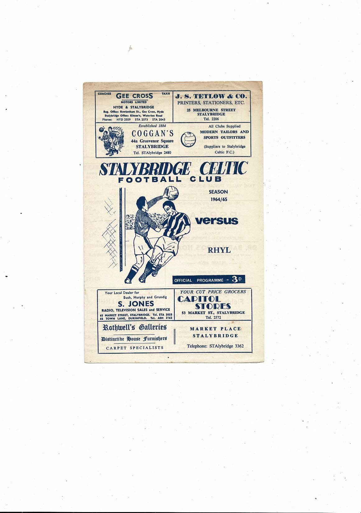 1964/65 Stalybridge Celtic v Rhyl Football Programme