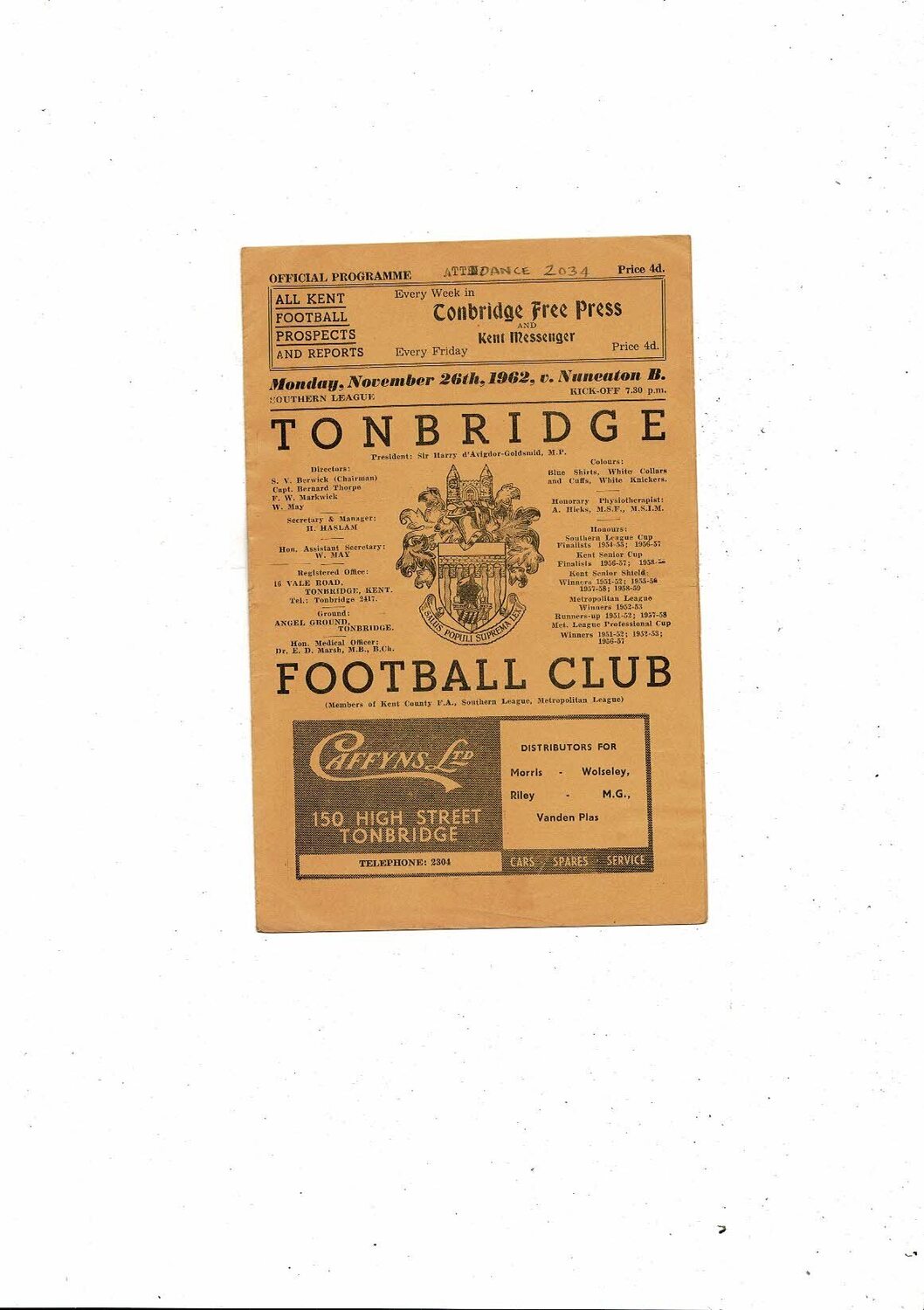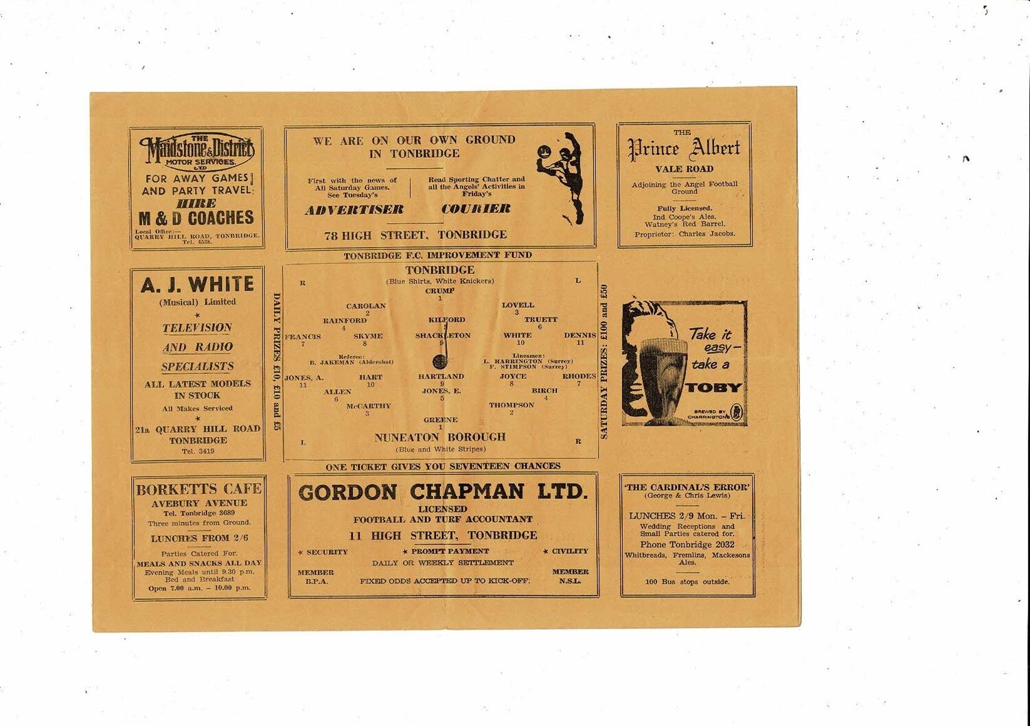 1962/63 Tonbridge v Nuneaton Borough Southern League Football Programme