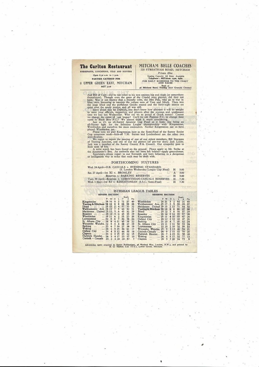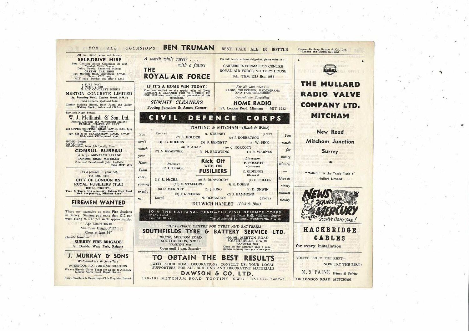 1962/63 Tooting & Mitcham v Dulwich Hamlet Isthmian League Football Programme
