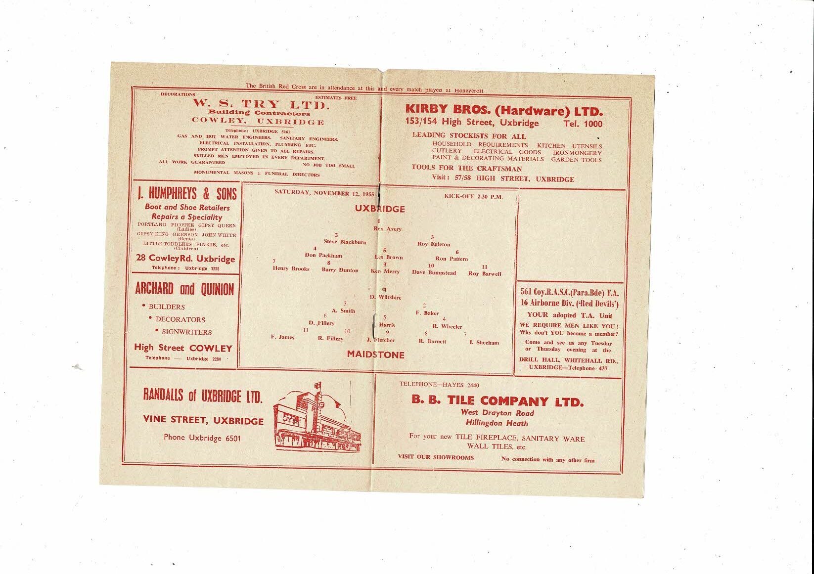 1955/56 Uxbridge v Maidstone Football Programme