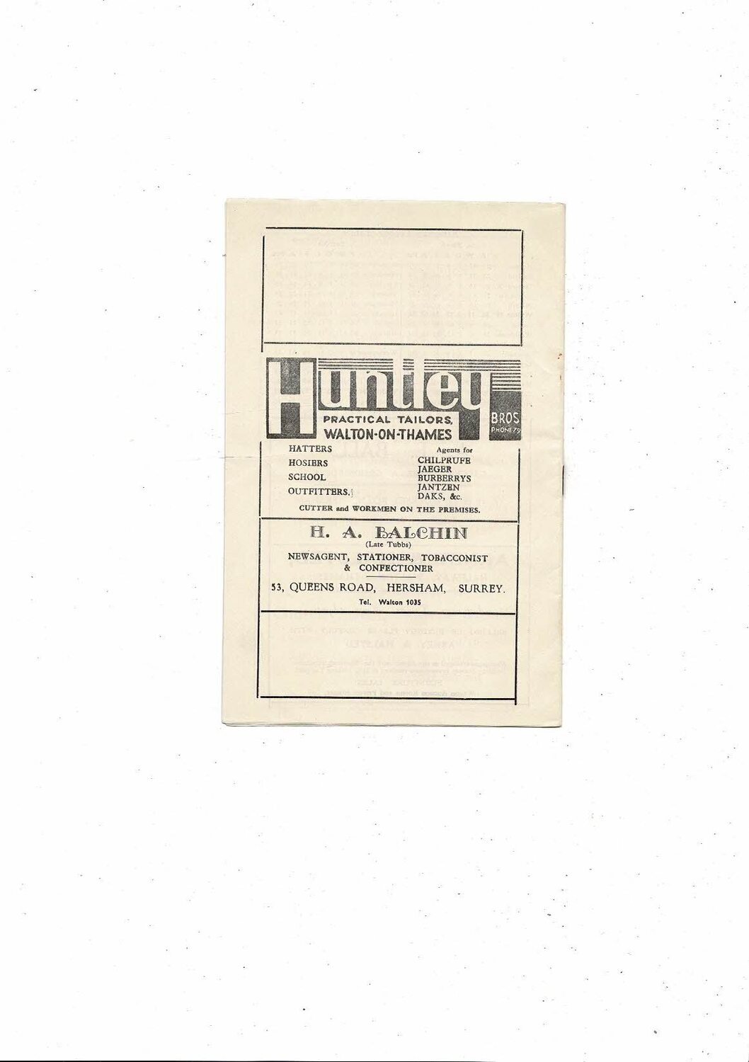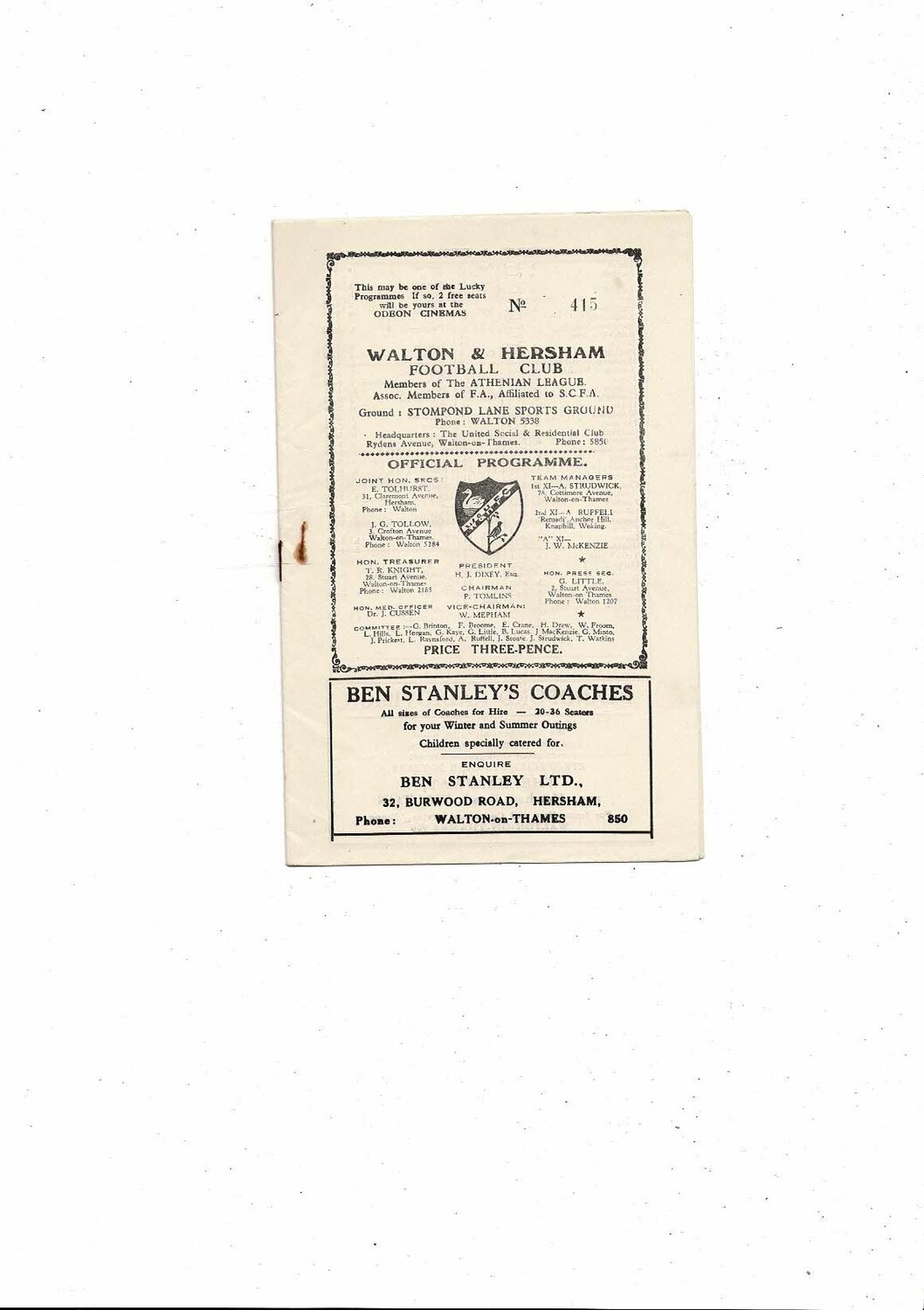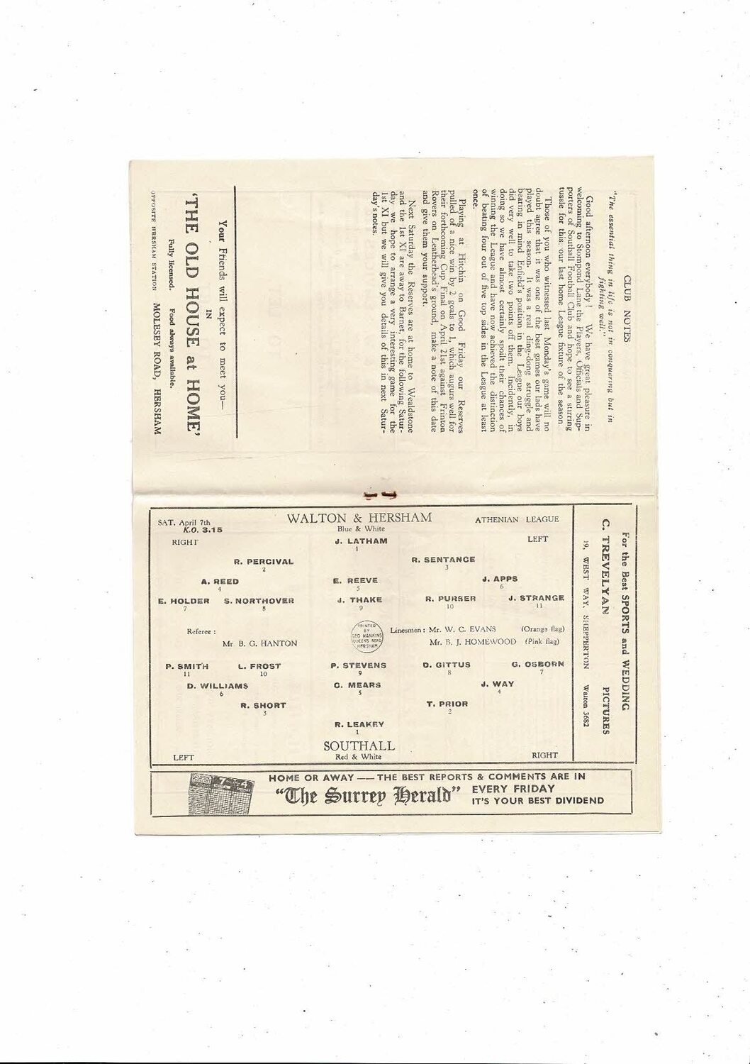 1961/62 Walton & Hersham v Southall Football Programme