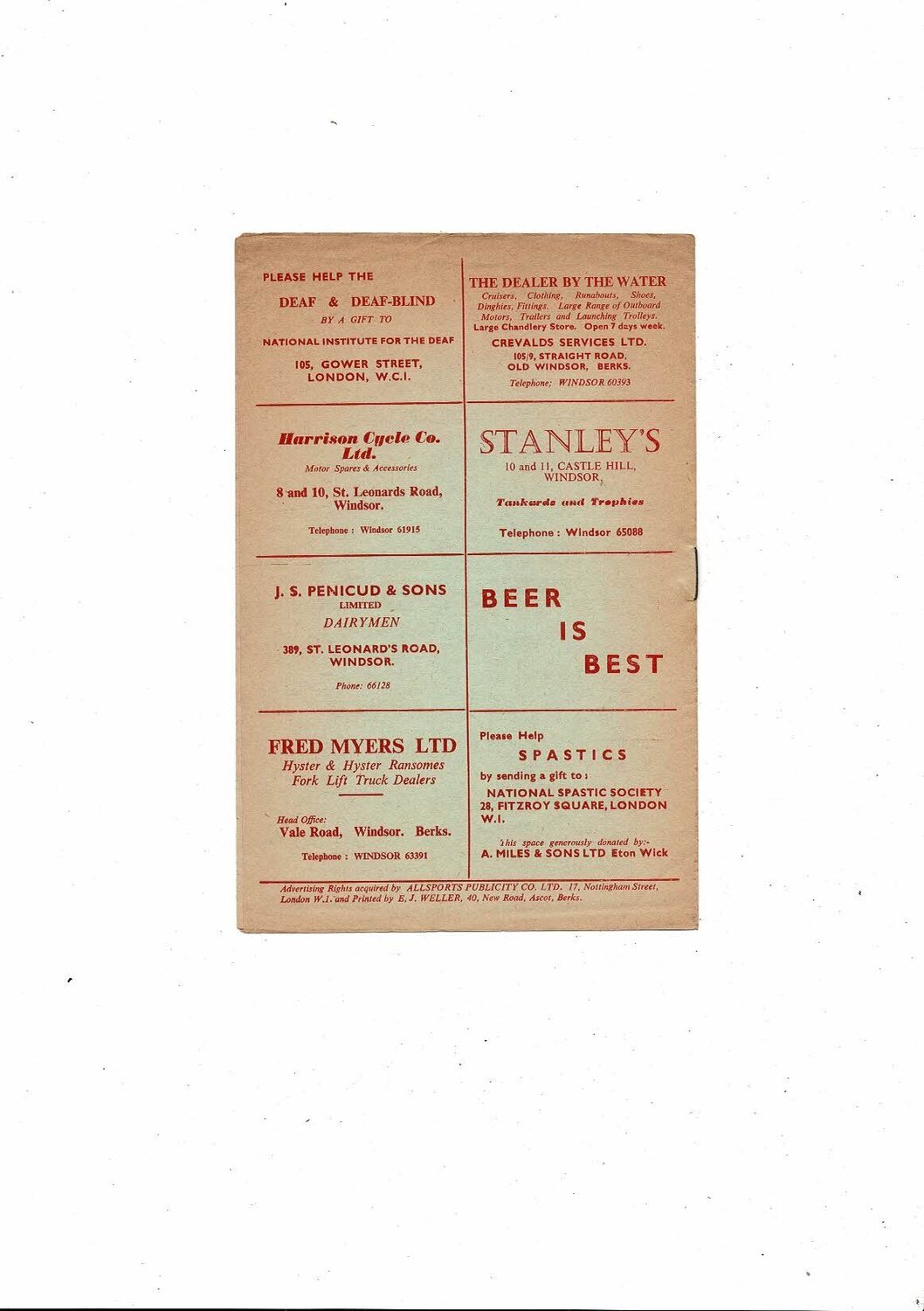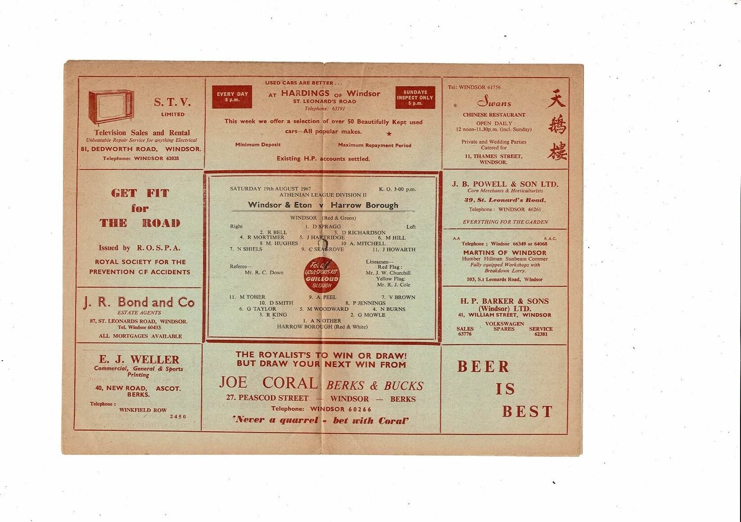 1967/68 Windsor & Eton v Harrow Borough Athenian League Football Programme