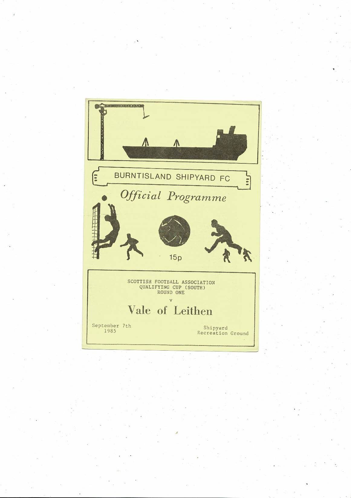 1985/86 Burntisland Shipyard v Vale of Leithen Scottish Cup Football Programme
