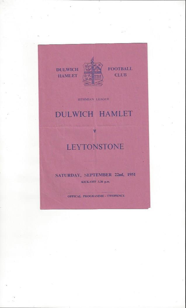 1951/52 Dulwich Hamlet v Leytonstone Football Programme