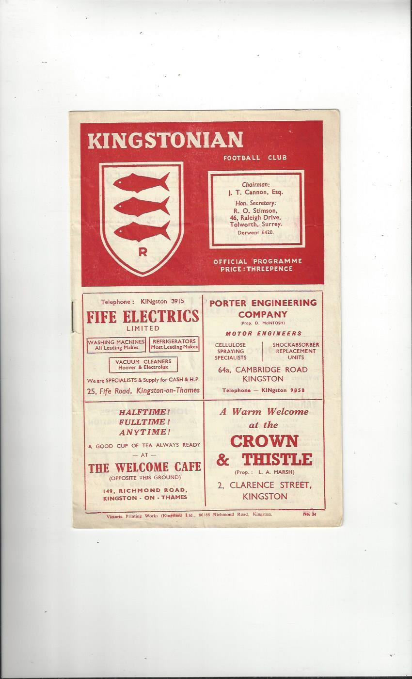 1953/54 Kingstonian v Carshalton Surrey Senior Shield Semi Final Football Programme