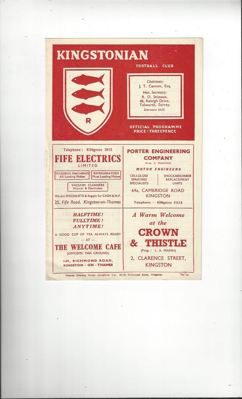 1953/54 Kingstonian v Ilford Football Programme