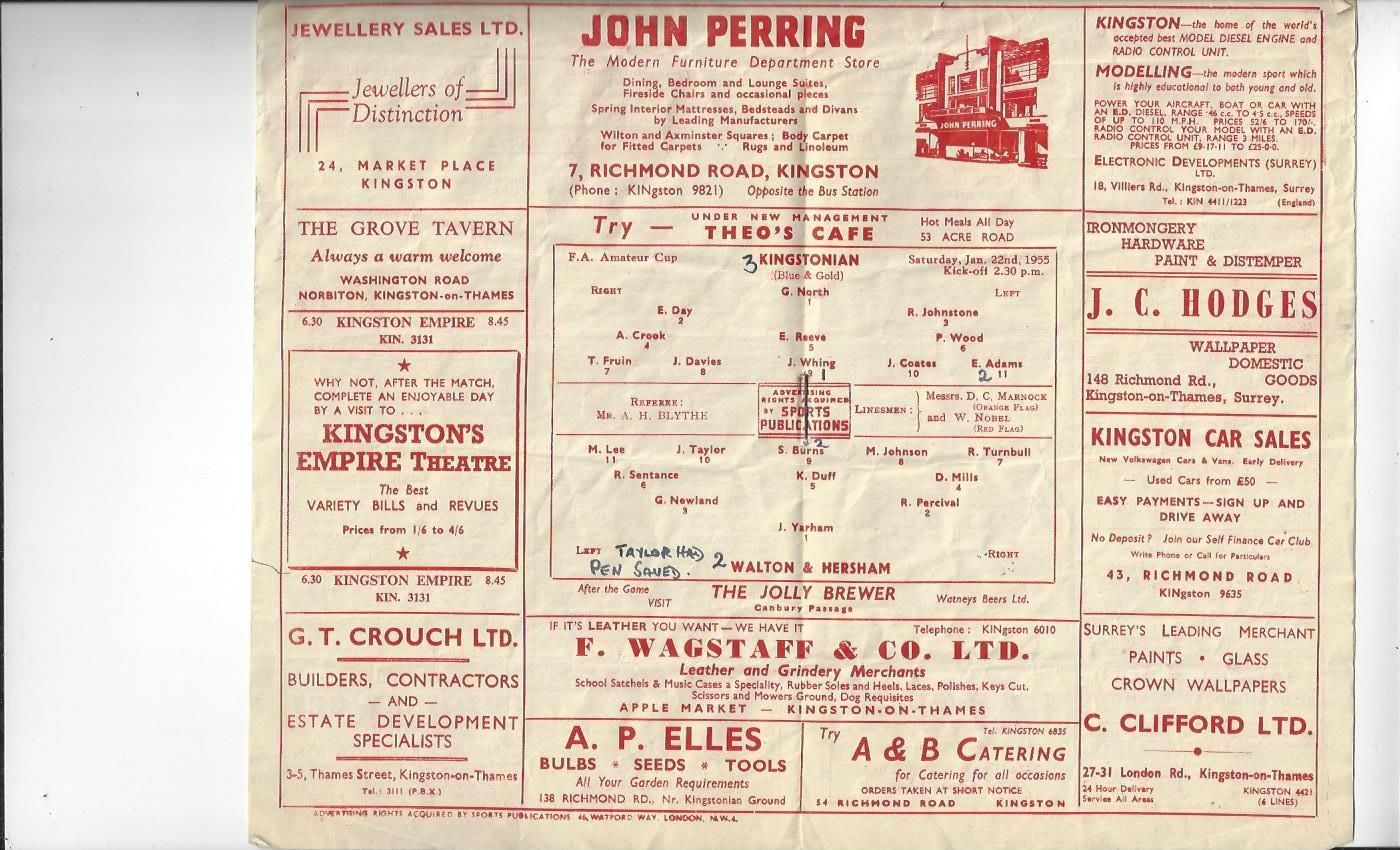 1954/55 Kingstonian v Walton & Hersham Amateur Cup Football Programme
