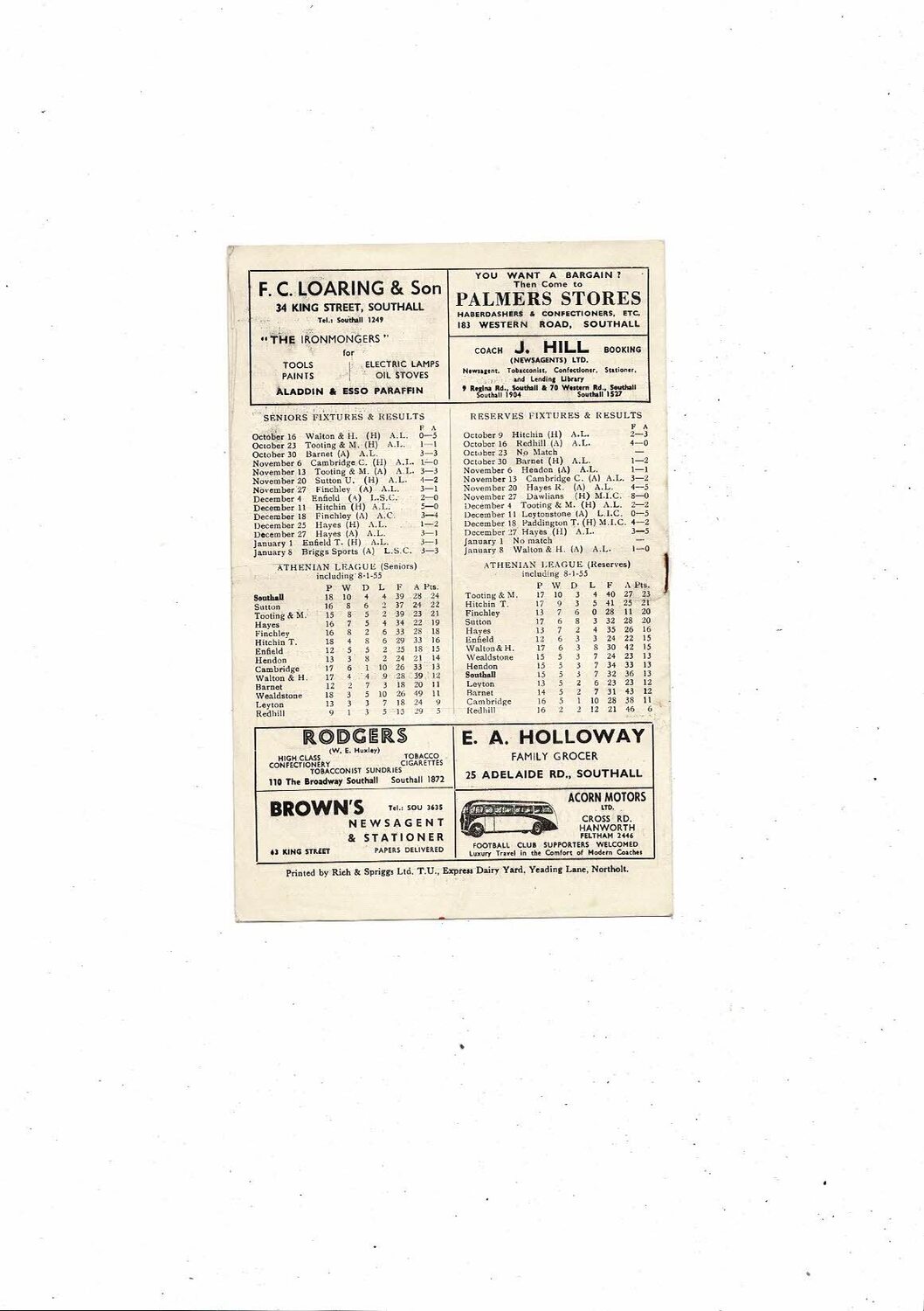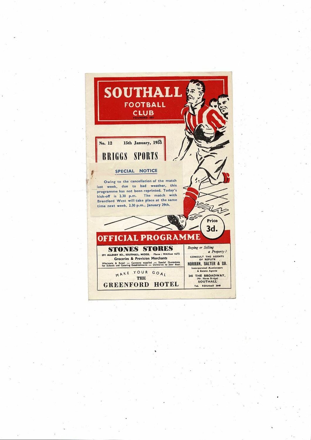 1954/55 Southall v Briggs Sports Athenian League Football Programme
