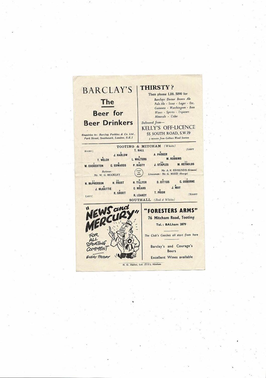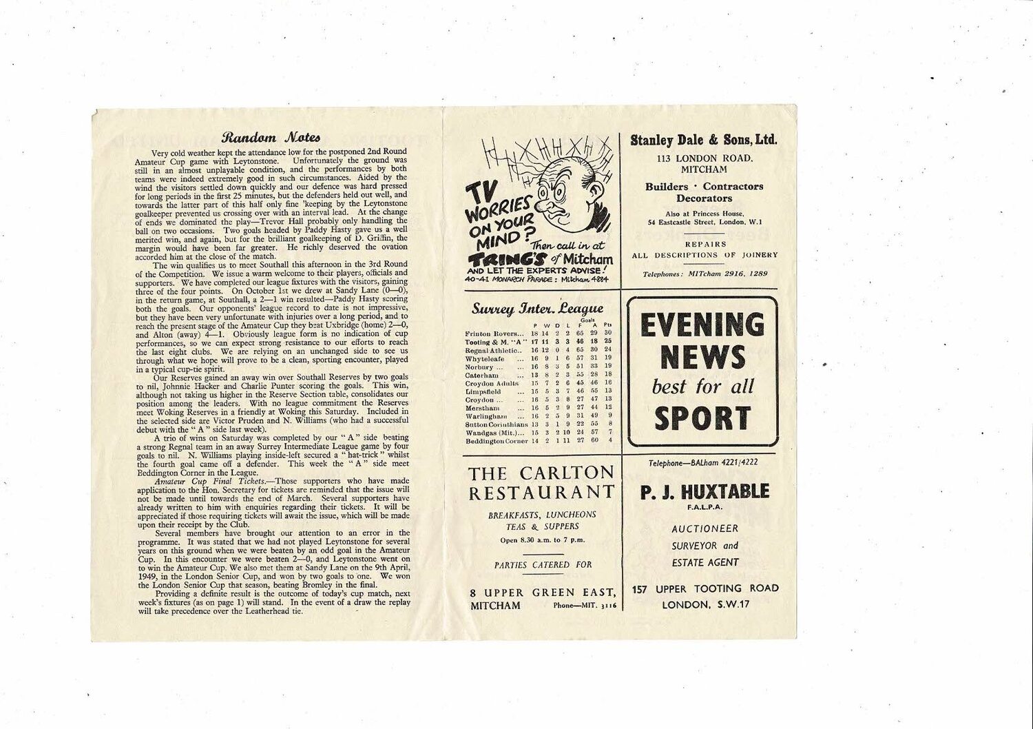 1955/56 Tooting & Mitcham United v Southall Amateur Cup Football Programme