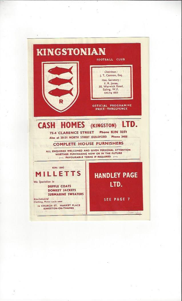 1956/57 Kingstonian v Dulwich Hamlet Football Programme