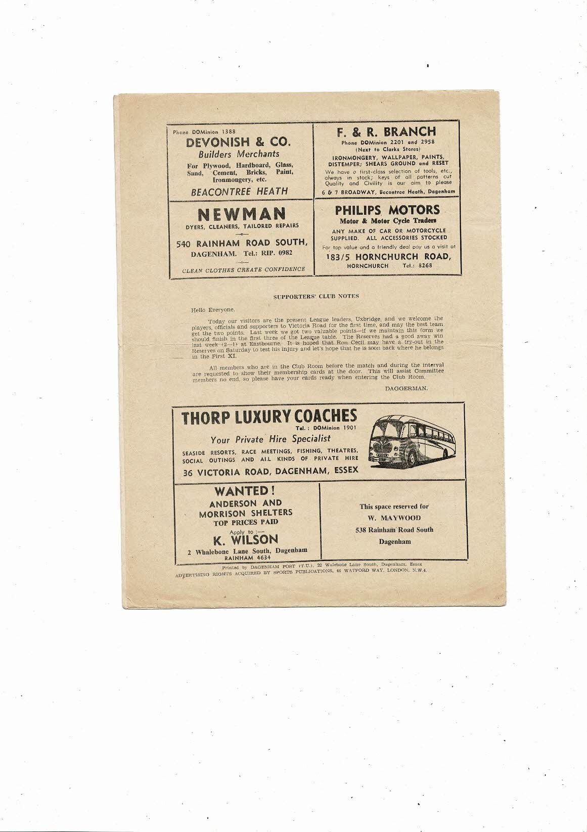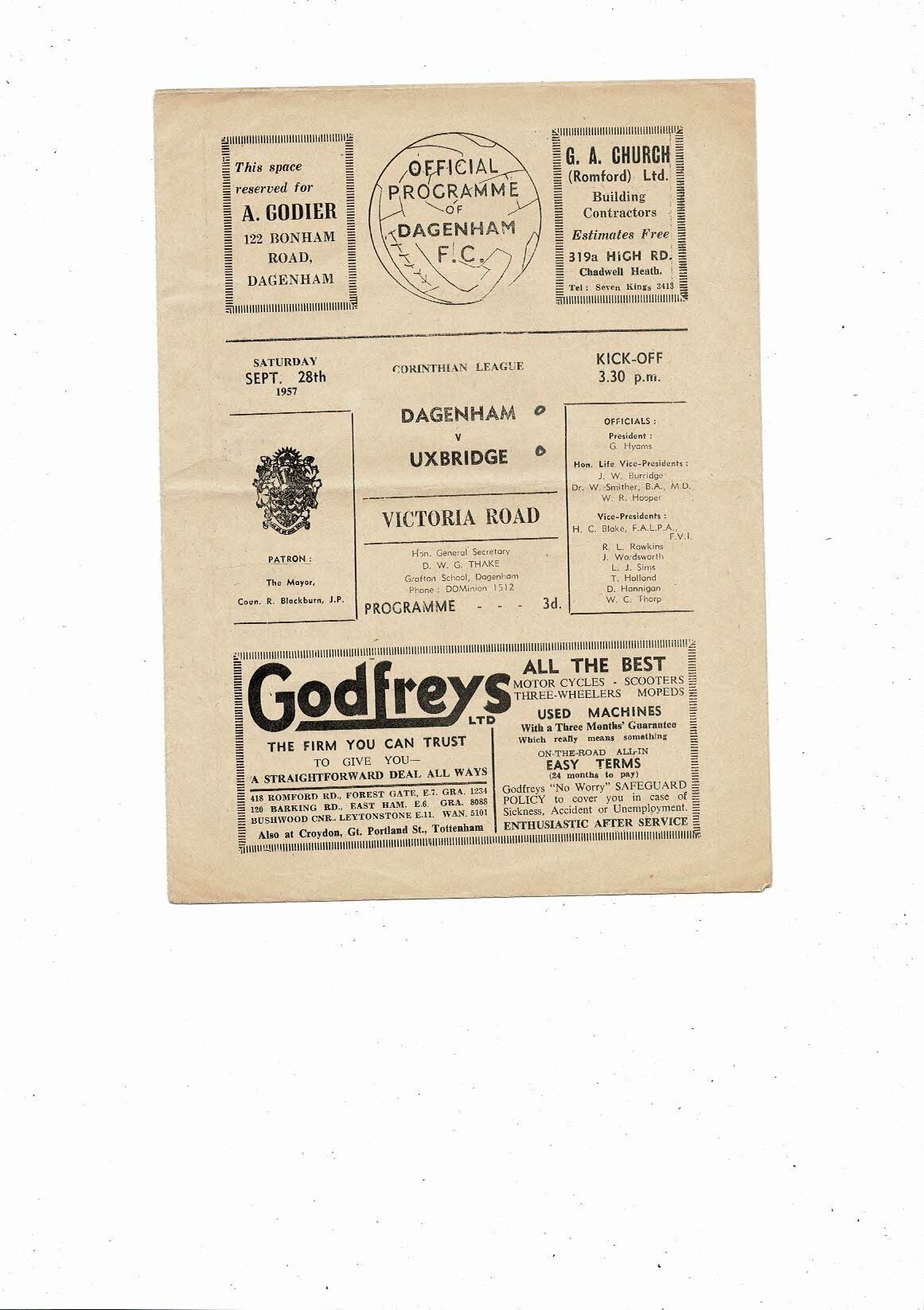 1957/58 Dagenham v Uxbridge Corinthian League Football Programme
