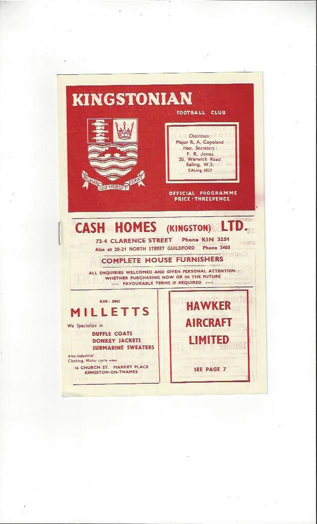 1958/59 Kingstonian v Dulwich Hamlet Football Programme