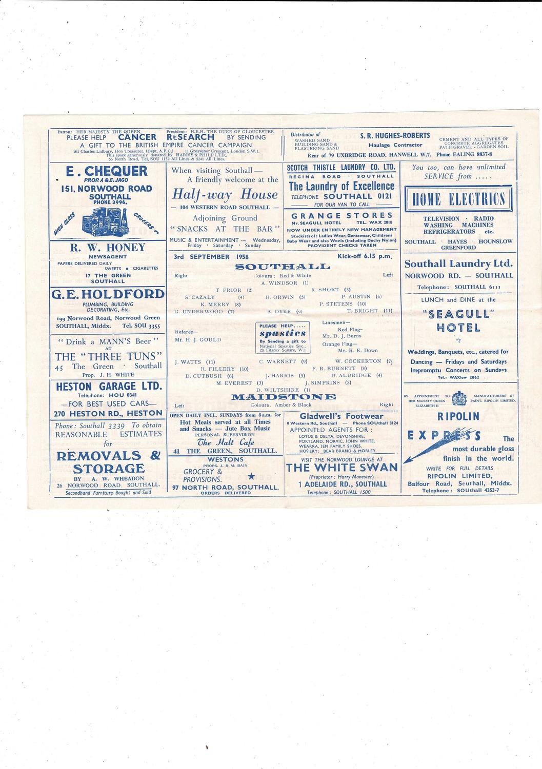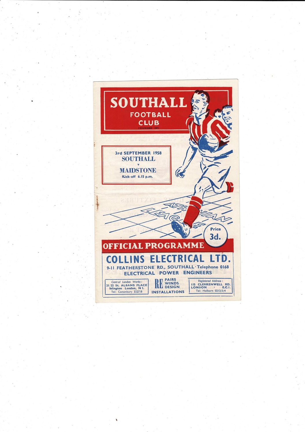 1958/59 Southall v Maidstone Football Programme