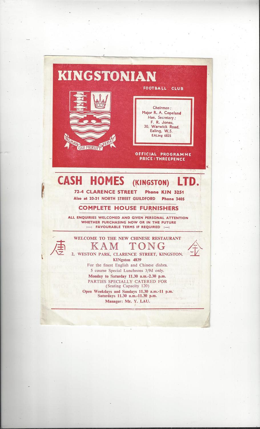 1959/60 Kingstonian v Woking Football Programme