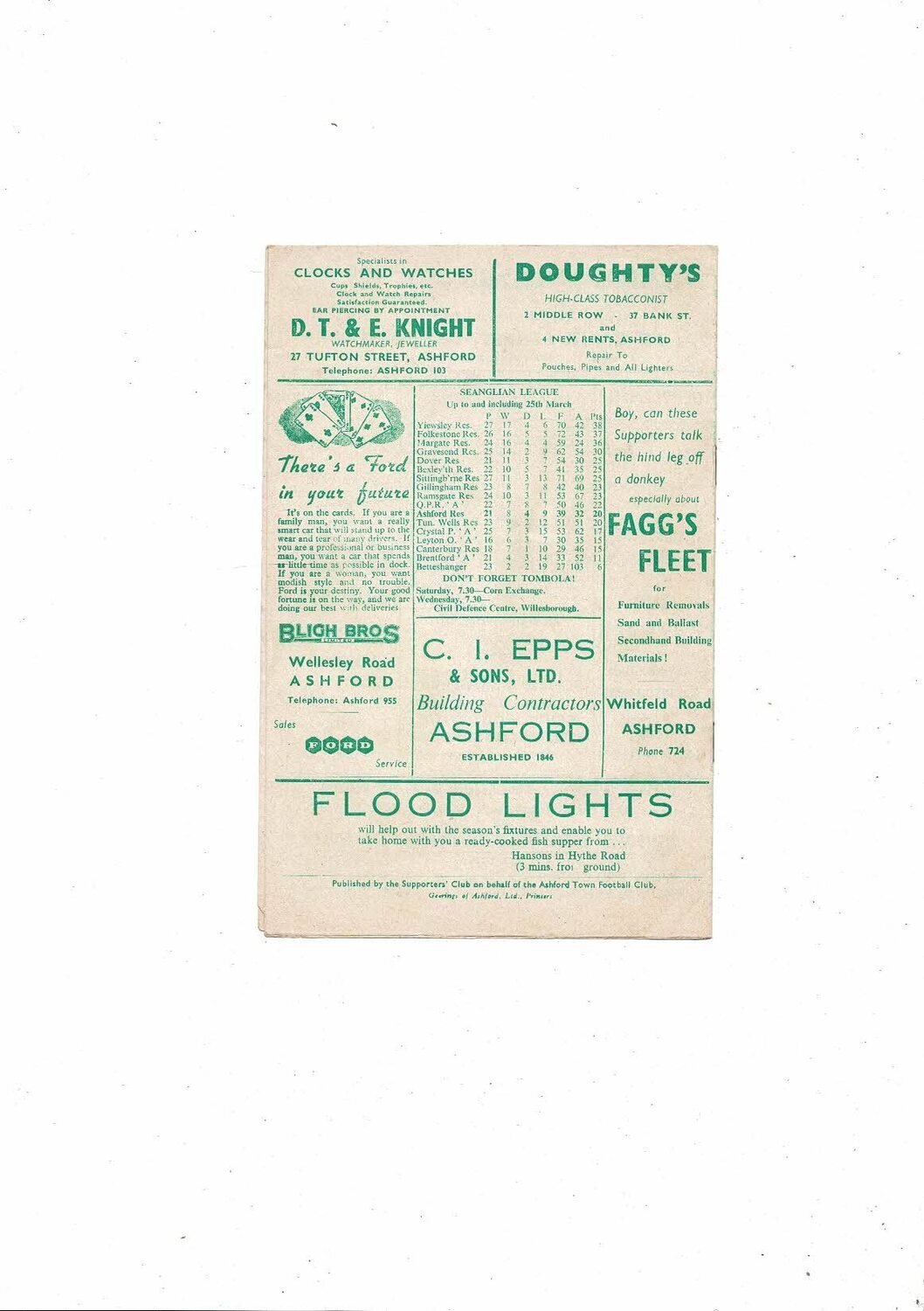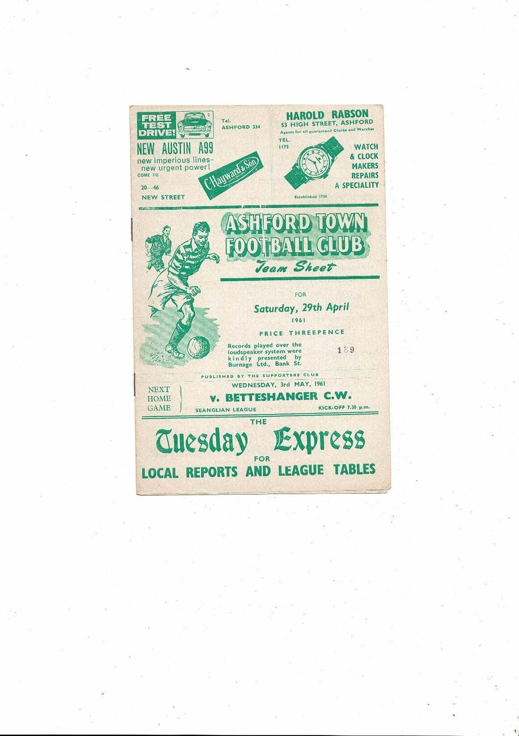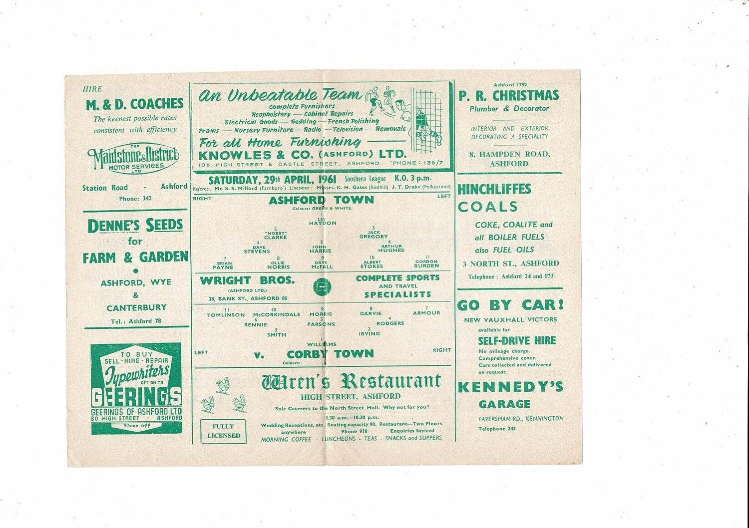 1960/61 Ashford Town (Kent) v Corby Town Southern League Football Programme