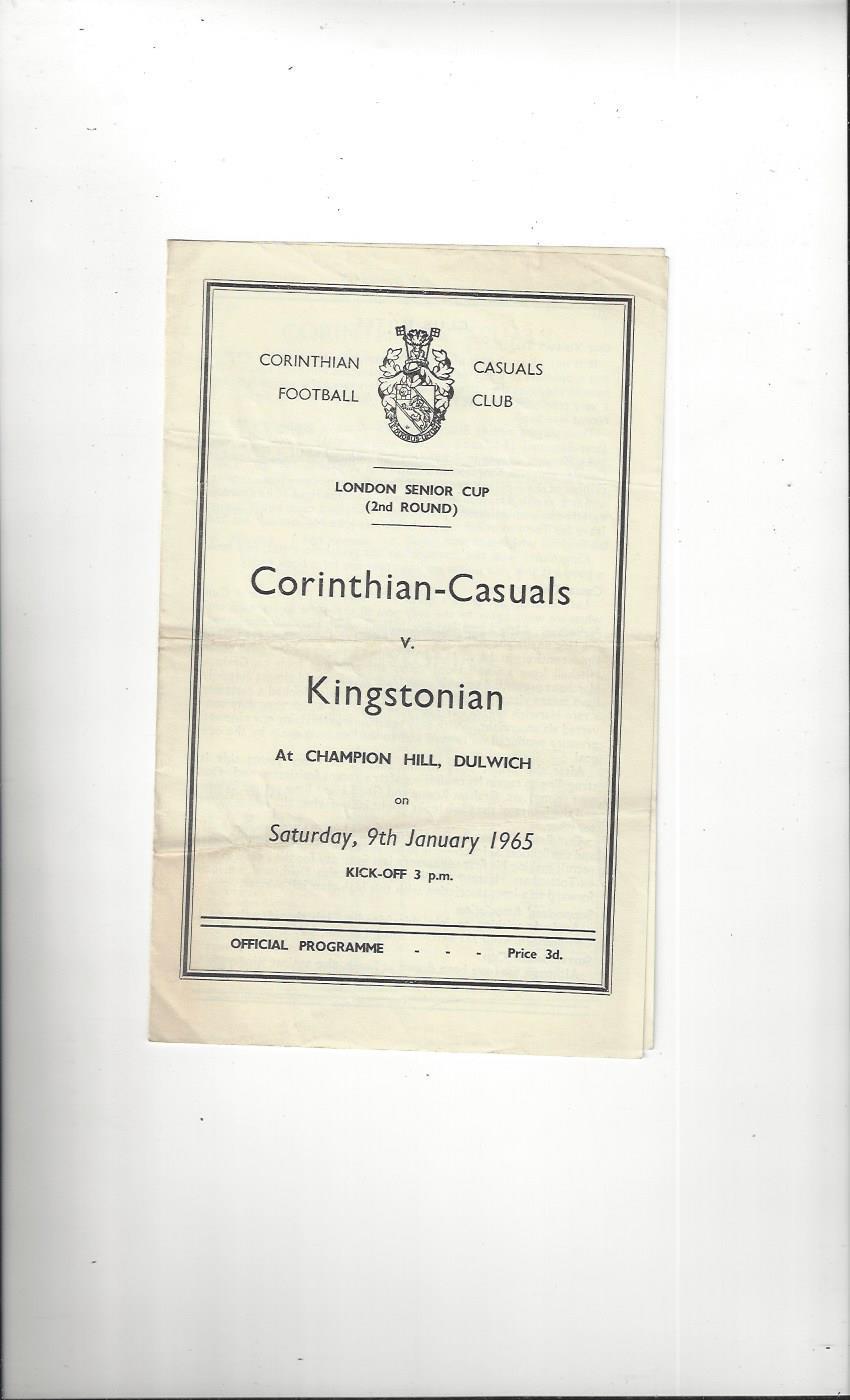 1964/65 Corinthian Casuals v Kingstonian London Senior Cup Football Programme