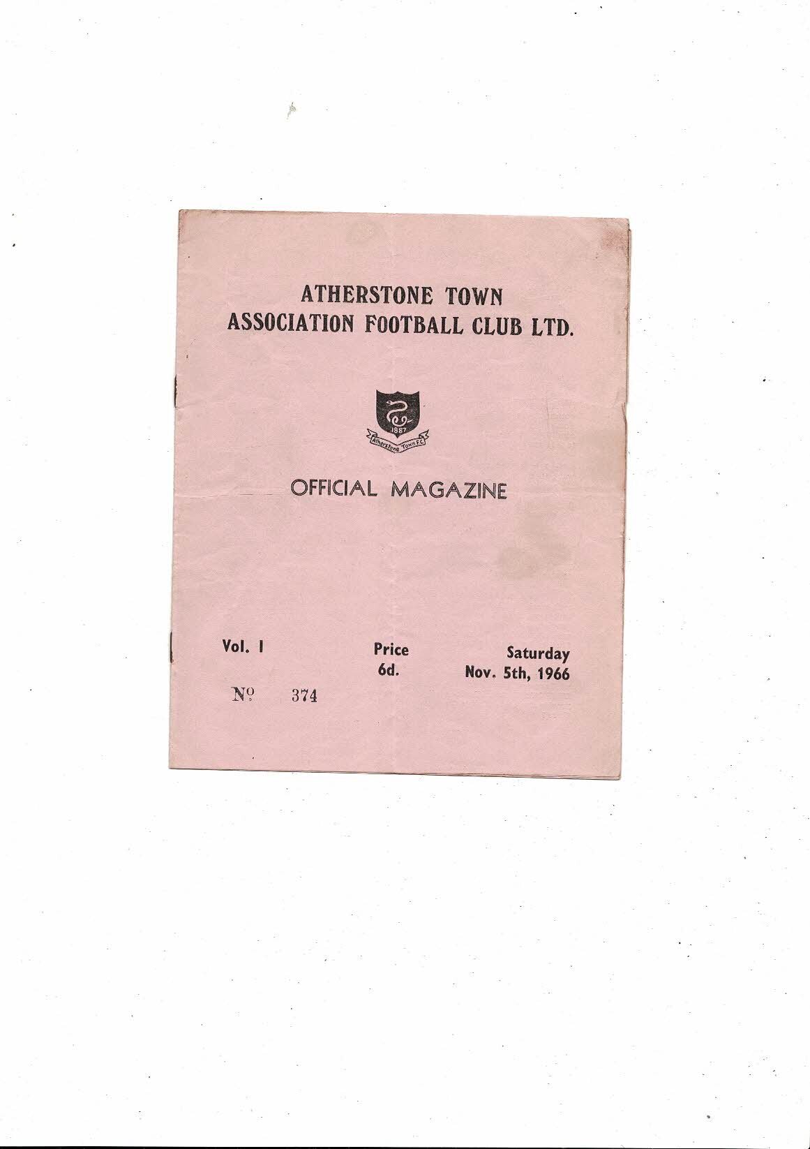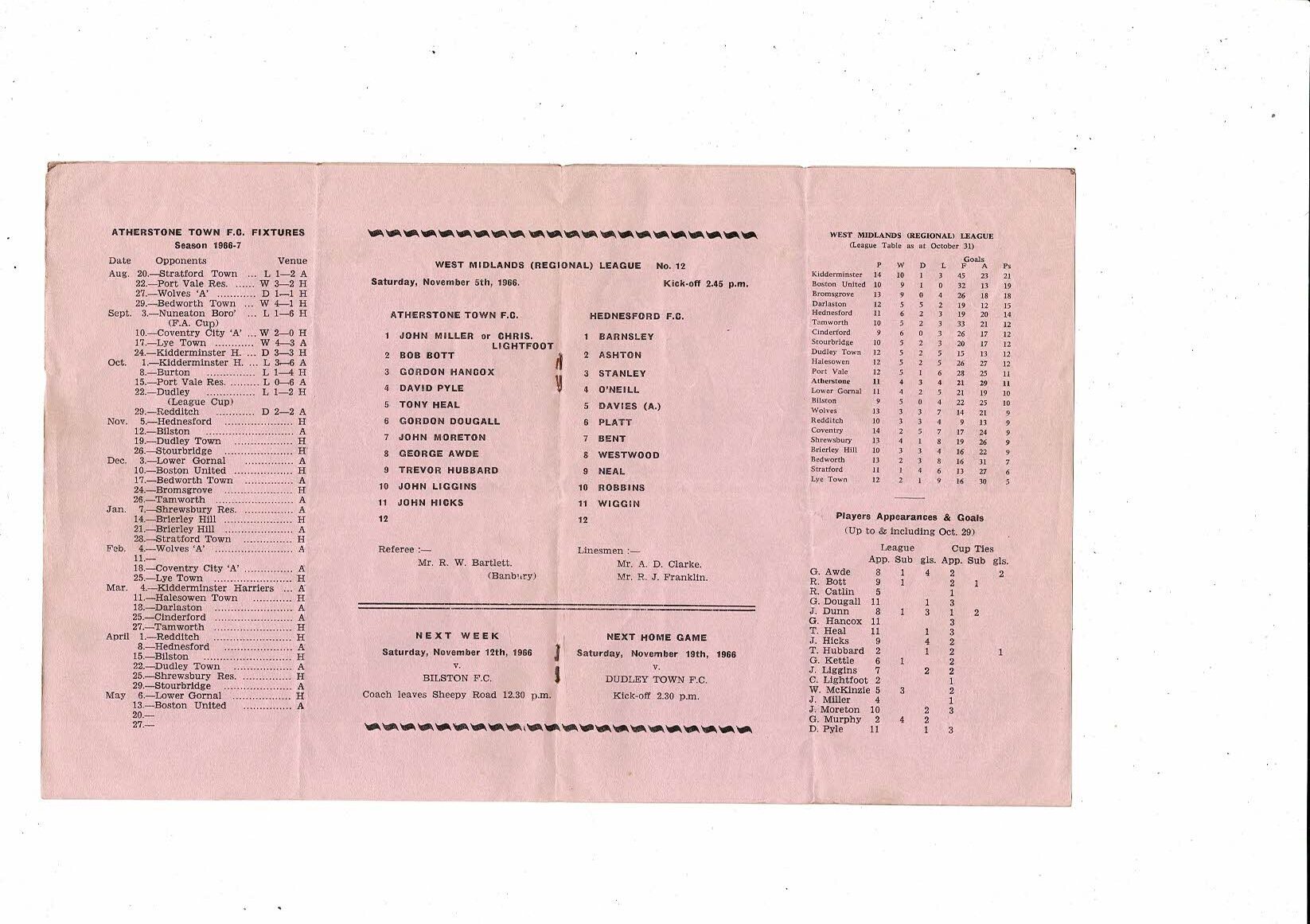 1966/67 Atherstone Town v Hednesford Football Programme