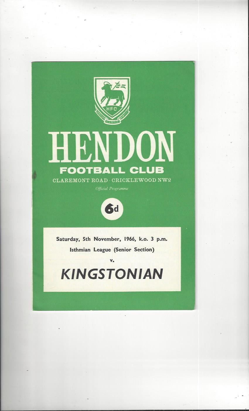 1966/67 Hendon v Kingstonian Football Programme