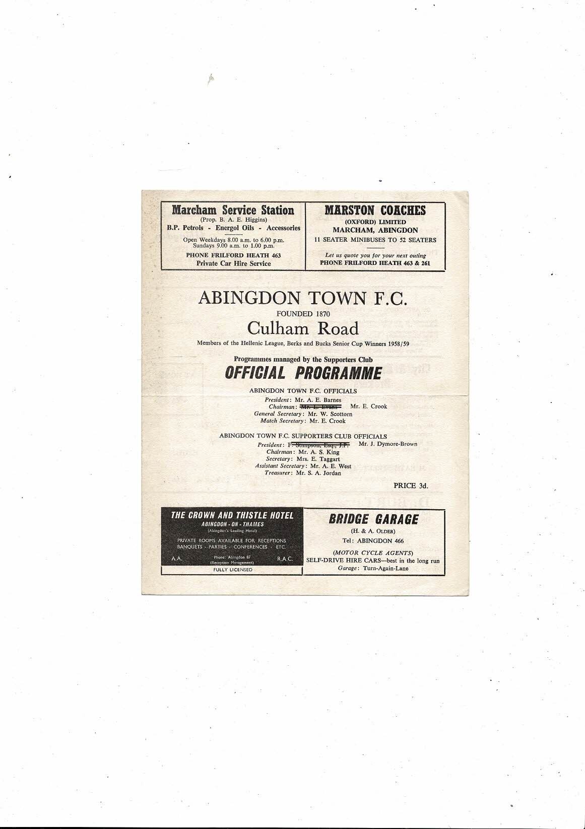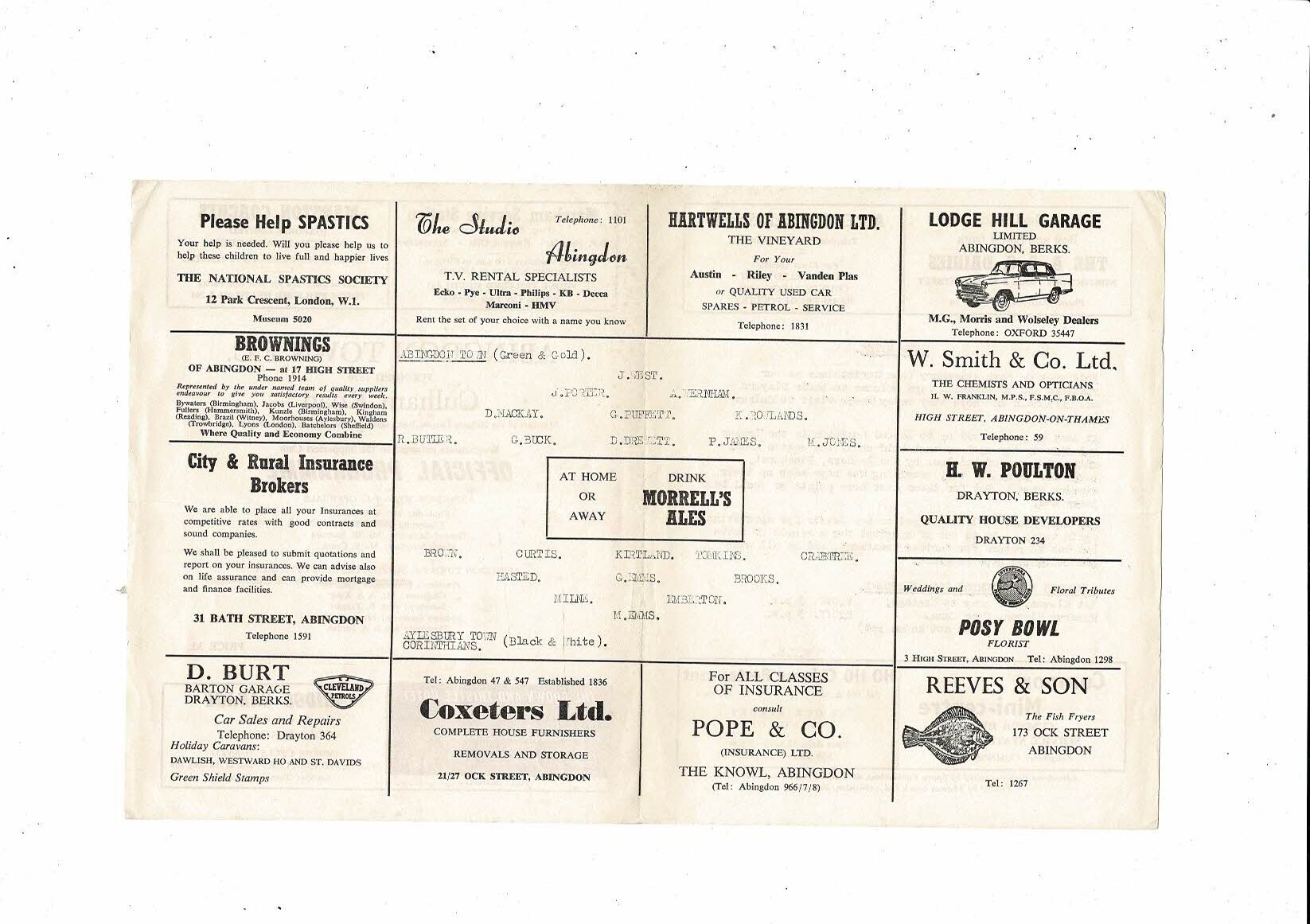 1967/68 Abingdon Town v Aylesbury Town Football Programme