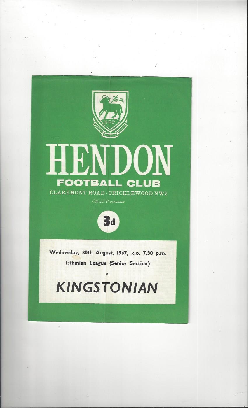 1967/68 Hendon v Kingstonian Football Programme