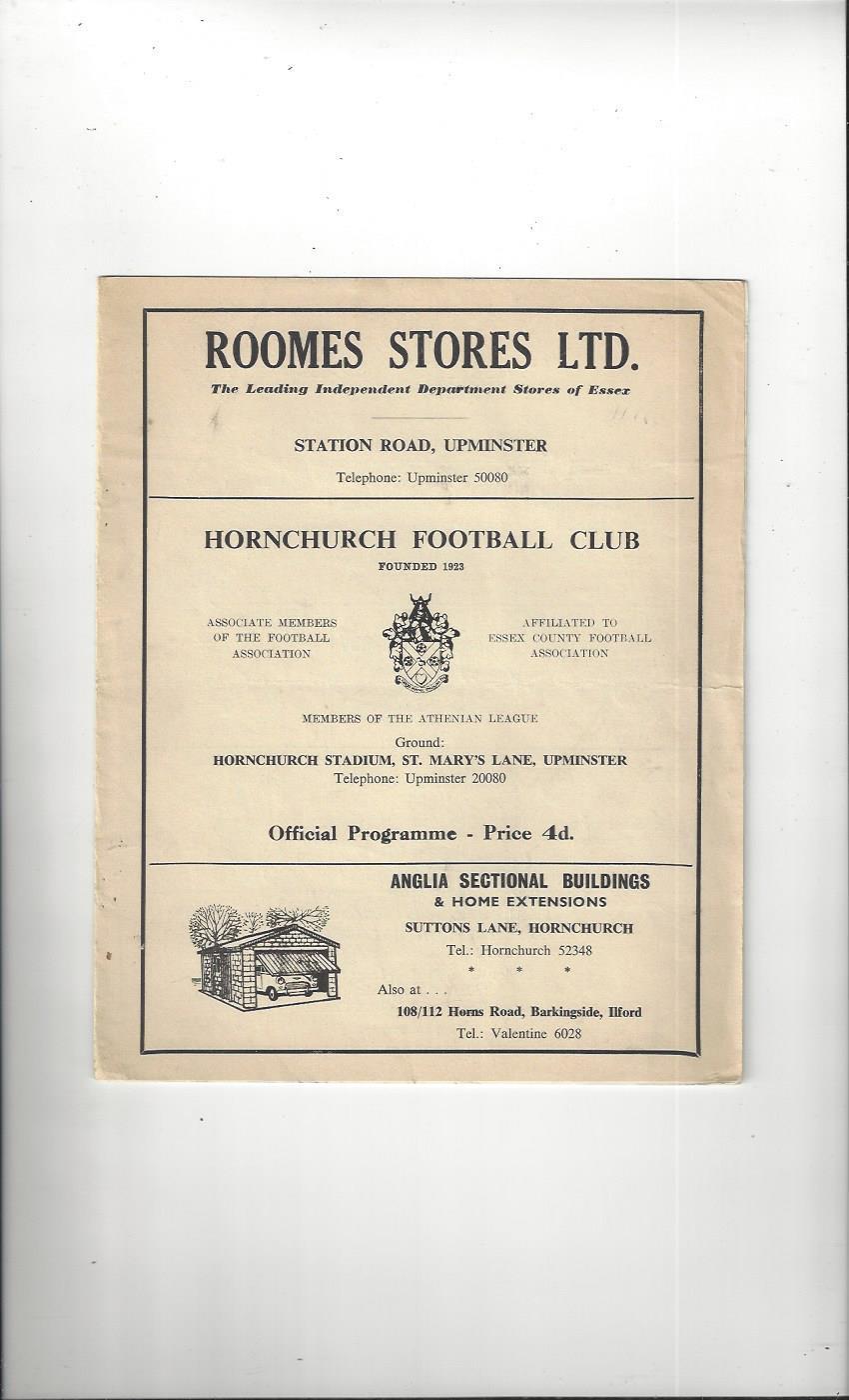 1967/68 Hornchurch v Barking Essex Senior Cup Football Programme