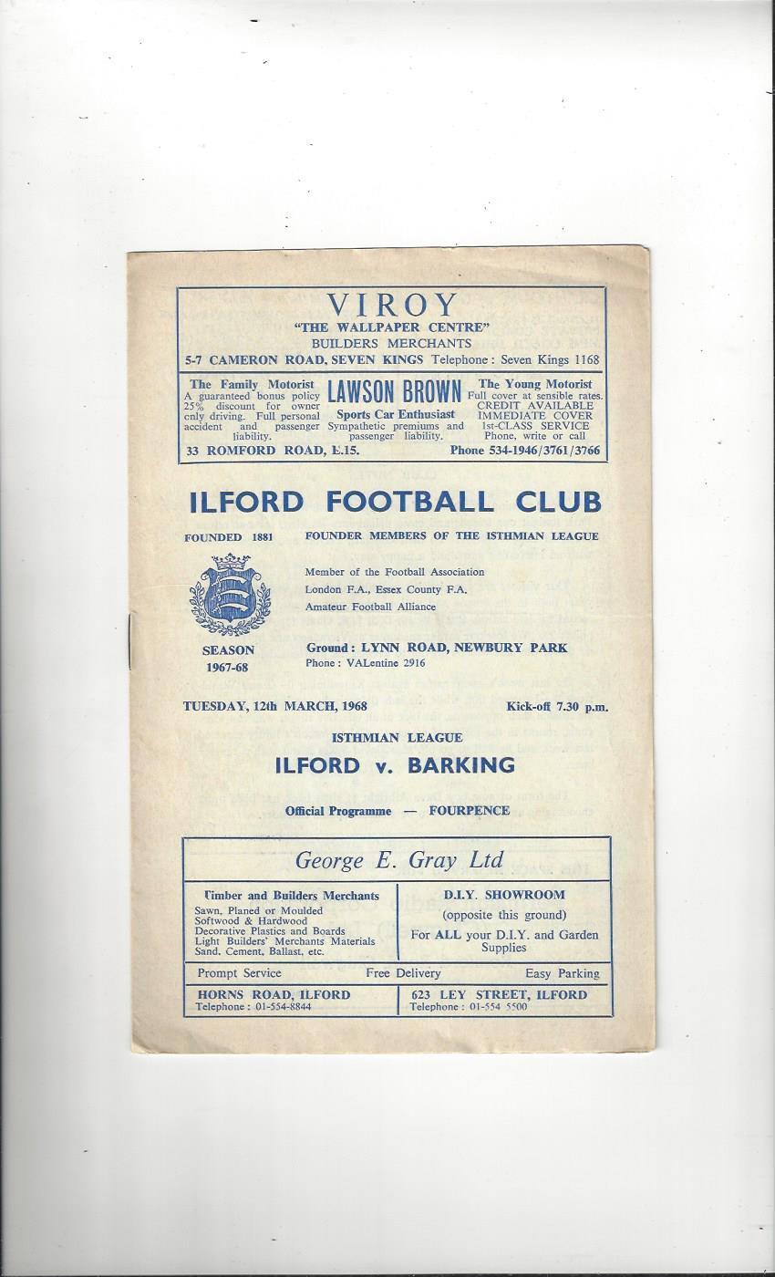 1967/68 Ilford v Barking Football Programme