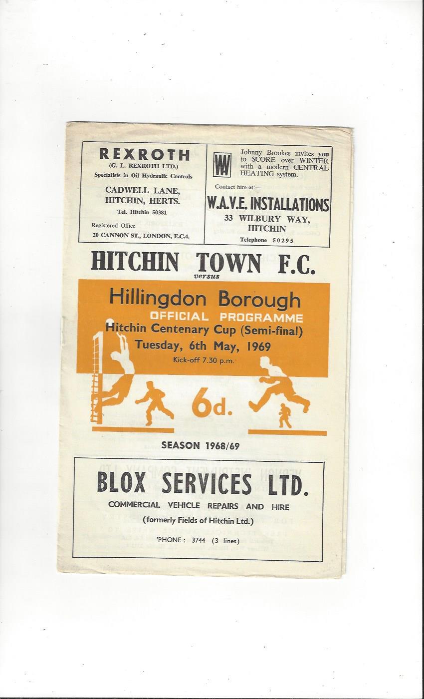 1968/69 Hitchin Town v Hillingdon Borough Hitchin Centanary Cup Semi Final Football Programme