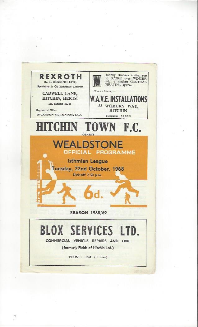 1968/69 Hitchin Town v Wealdstone Football Programme
