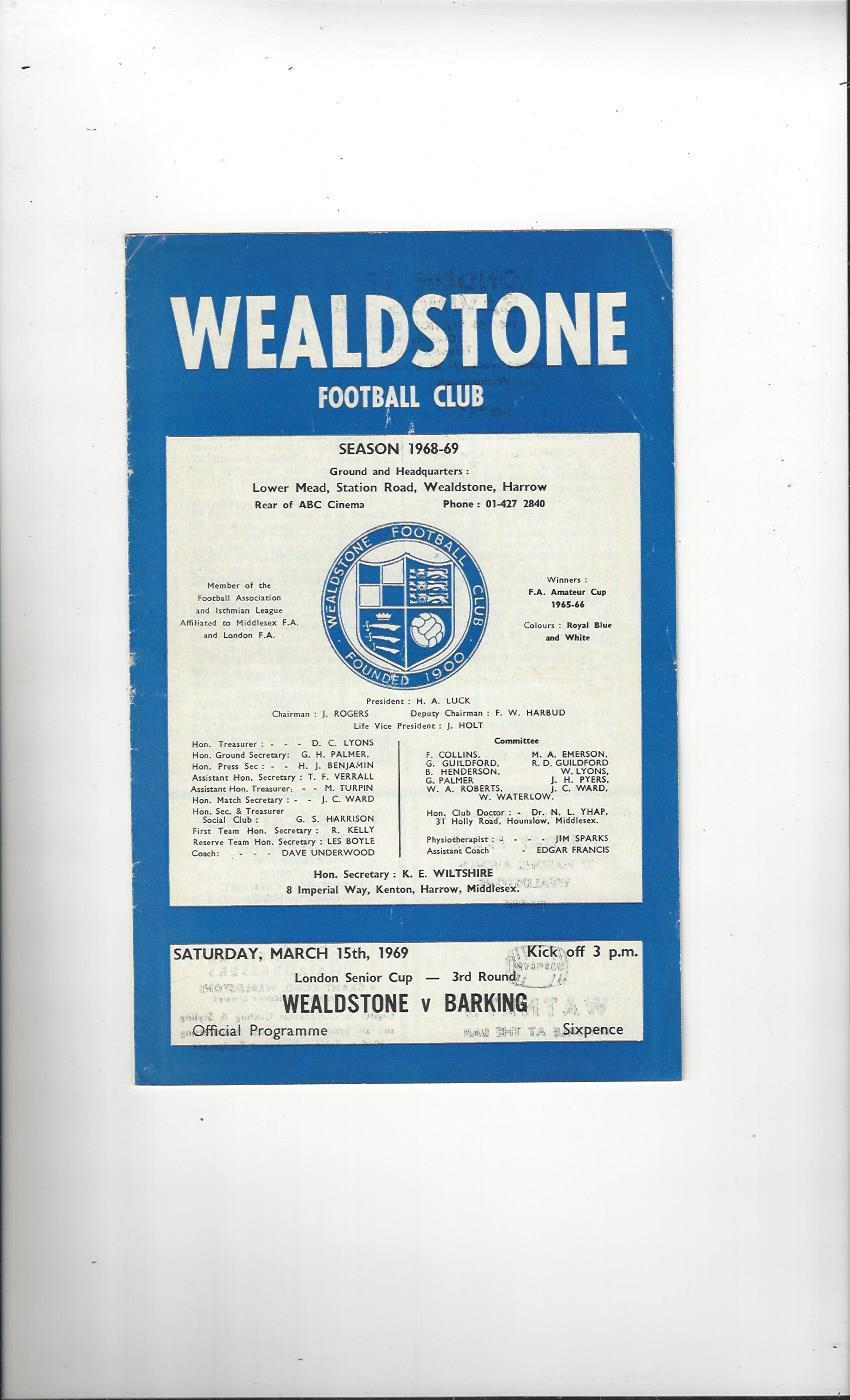 1968/69 Wealdstone v Barking London Senior Cup Football Programme
